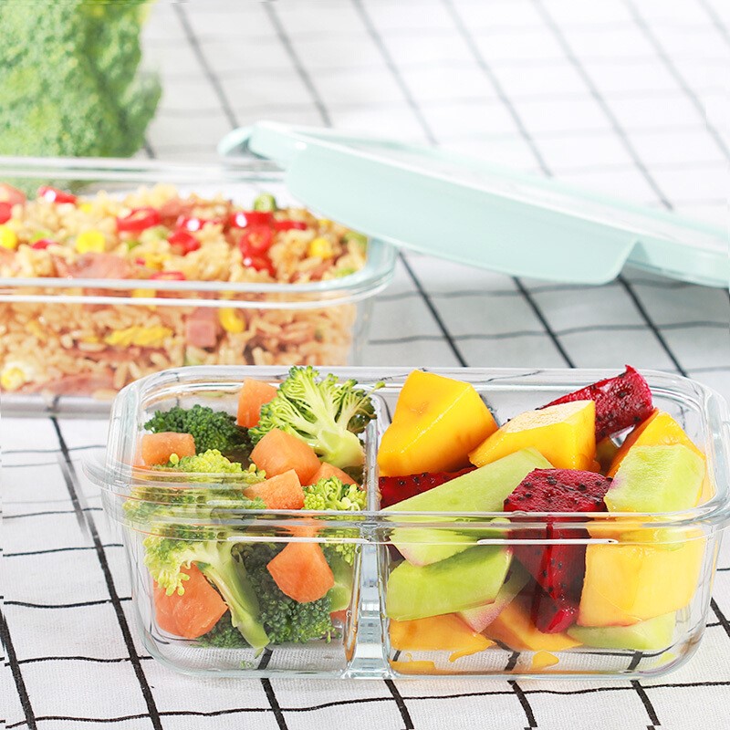 科威駱N080玻璃保鮮盒微波爐加熱分隔飯盒 長(zhǎng)兩隔1000ml