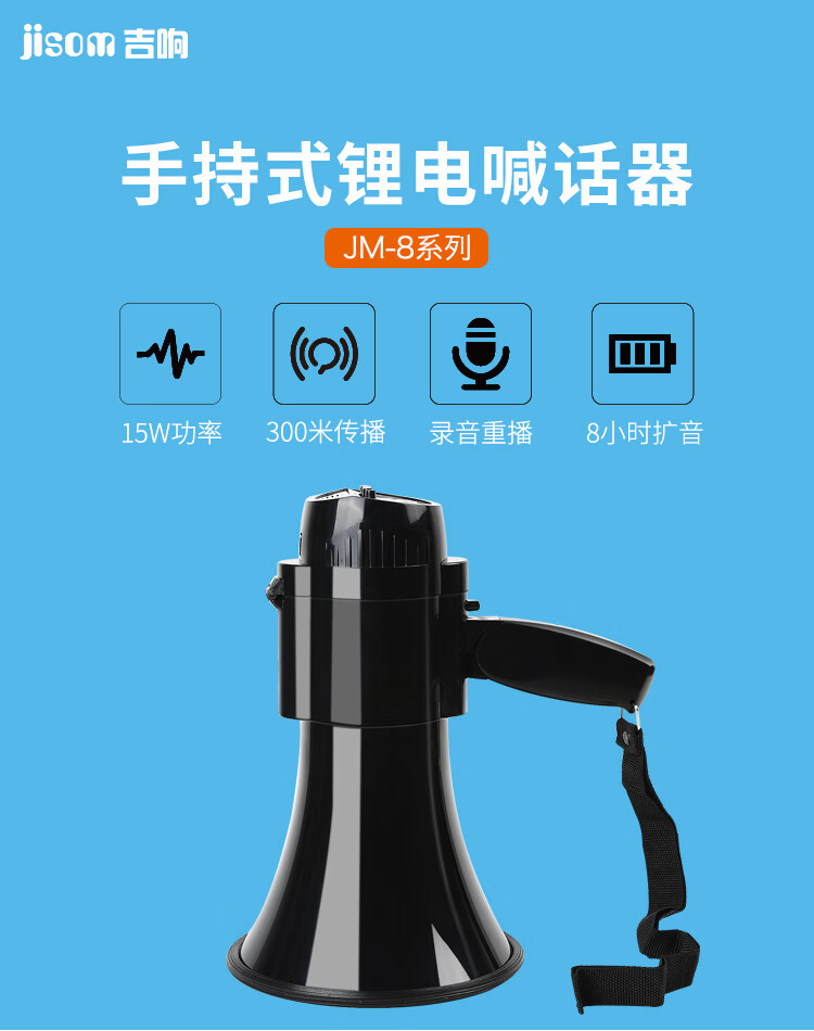 吉響(jisomJ喊話器M-8 15W大功率擴(kuò)音器 可充電叫賣宣傳手持喇叭 JM-8(標(biāo)準(zhǔn)版)