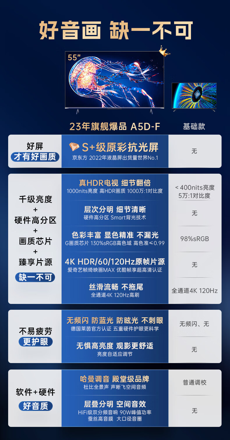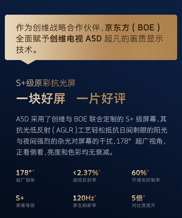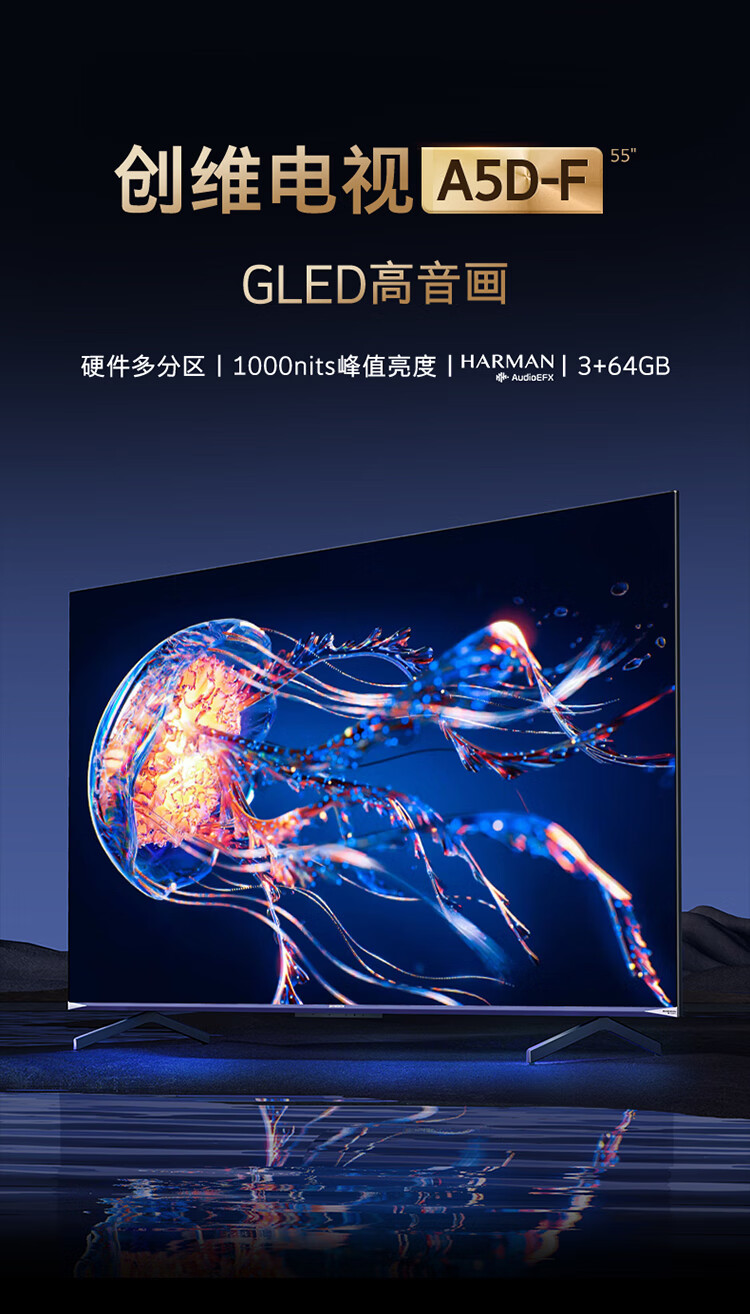 創(chuàng)維電視55A5D-F 55英寸 4K超高清 硬件多分區(qū) 3+64GB 哈曼調(diào)音 遠(yuǎn)場(chǎng)語(yǔ)音 彩電液晶超薄護(hù)眼平板電視機(jī)