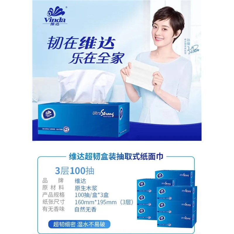 維達(dá) 盒裝抽取式面紙 100抽*3包超韌抽紙盒裝(3盒/提)