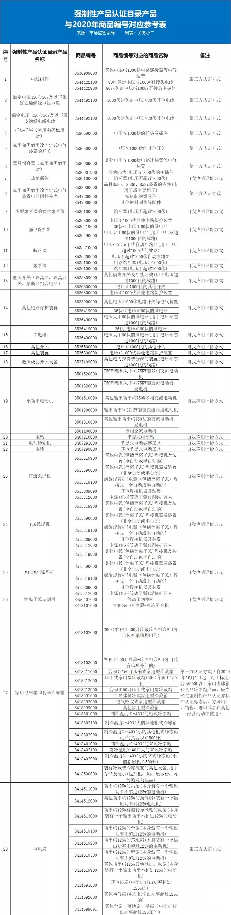 點擊文末“閱讀原文”,下載《強制性產品認證目錄產品與2020年商品編號對應參考表》Excel版。