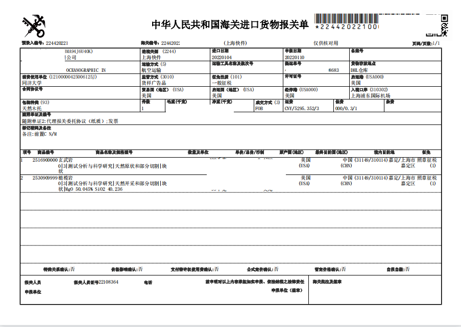從美國進(jìn)口一個托盤礦石,貨物是客戶通過美國同事采集樣品,然后空運(yùn)發(fā)到上海,收貨地址是某大學(xué)醫(yī)學(xué)研究室。由于收貨人是該學(xué)院的醫(yī)學(xué)教授,所以對于貨物進(jìn)口的流程不是很熟悉。在確認(rèn)好價格后讓我們直接于負(fù)責(zé)空運(yùn)的DSV聯(lián)系,DSV最初只讓我們提供申報抬頭,后在貨物即將到港才通知我們,需要我們提供液氮罐進(jìn)口清關(guān)服務(wù)。因為貨物還有兩天就要到達(dá),客戶本人又在美國,有著近12個小時的時差。所以在還沒有得到客戶的確認(rèn)情況下,為了不耽誤清關(guān)時間,我便當(dāng)即開始準(zhǔn)備資料。后在晚上跟客戶說明情況后,客戶決定交由我們清關(guān),并且將所做的清關(guān)資料發(fā)給客戶審核。