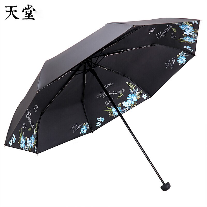 天堂 三折黑膠晴雨傘 纖維傘架 聚酯纖維 110*58*96cm 錦上藍色