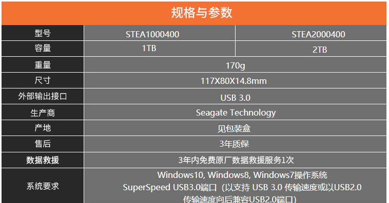 希捷(Seagate) 移動硬盤 1TB USB3.0 2.5英寸 高速 輕薄 便攜 STJL100040 (計價單位:塊)
