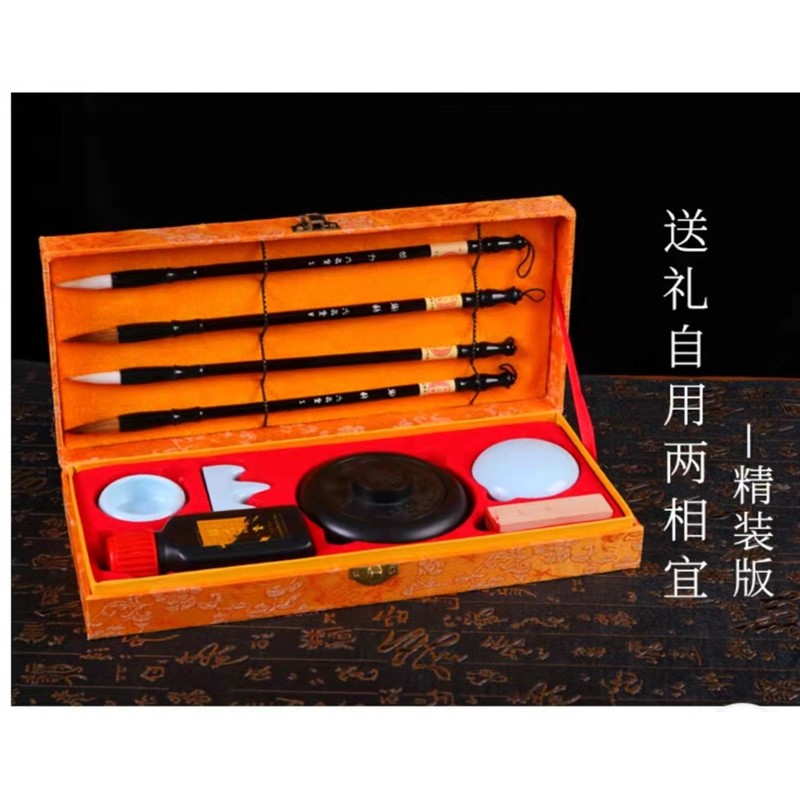國產 六品堂 書寫用筆類用具 毛筆套裝文房四寶筆墨紙硯狼毫毛筆初學者書法用品 M4578 中楷