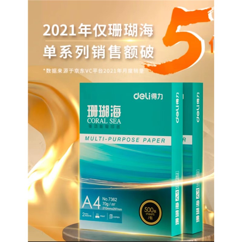 得力(deli )復(fù)印紙 珊瑚海 H23N A4復(fù)印紙80g(500張/包)