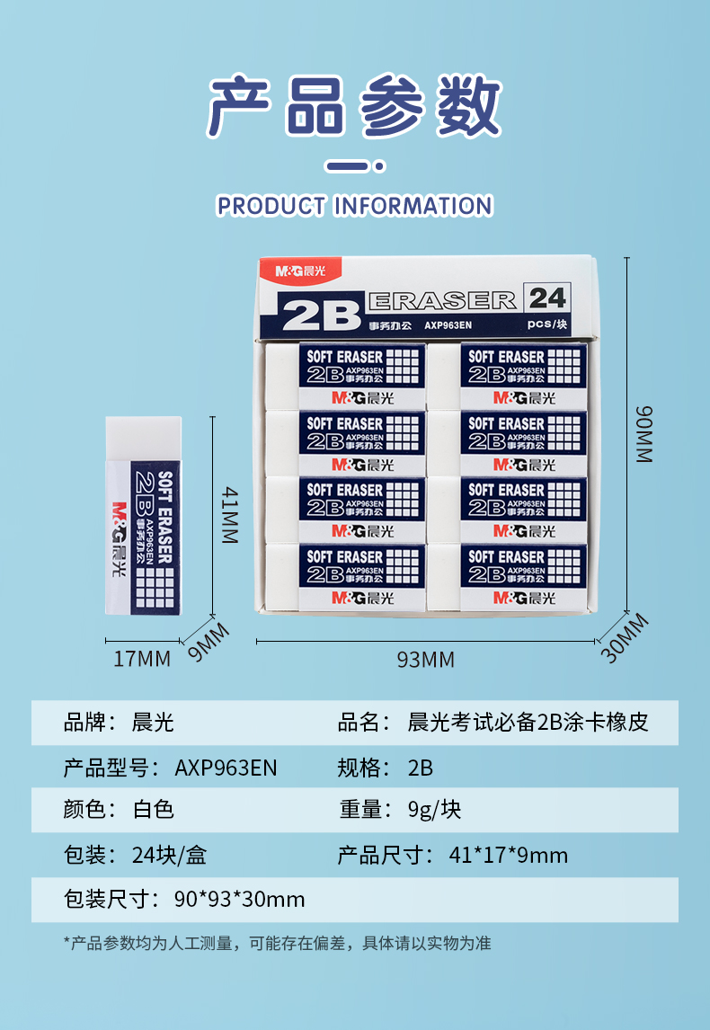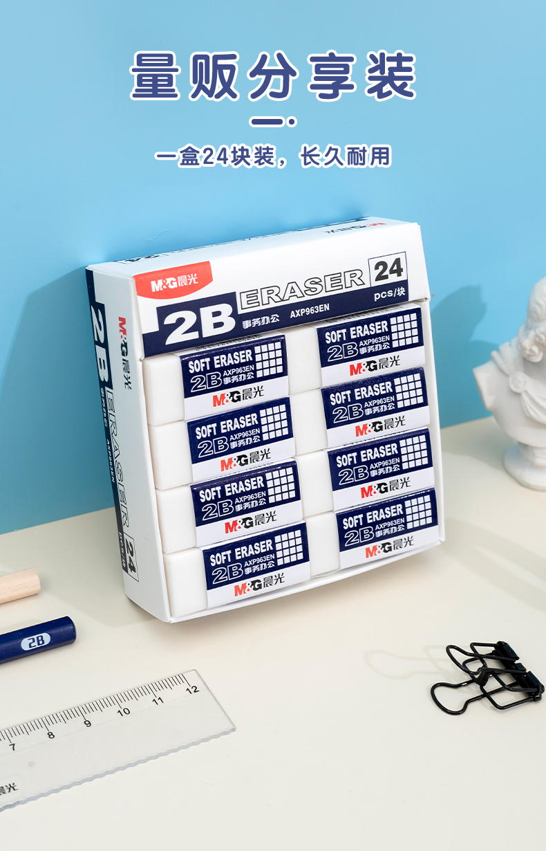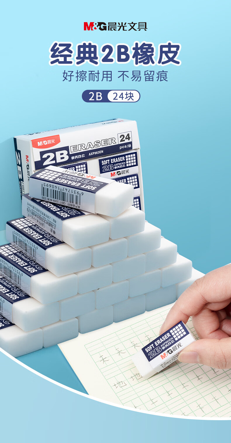 晨光(M&G)文具24塊凈白2B橡皮擦 學(xué)生考試美術(shù)繪圖橡皮 易擦少屑 簡(jiǎn)約辦公 鉛筆用開學(xué)文具AXP963EN