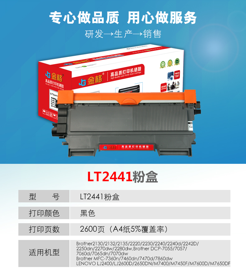 金格 LT2441粉盒 適用聯(lián)想 LJ2400/LJ2600D/2650DN/M7400/M7450F/M7600D/M7650DF 硒鼓