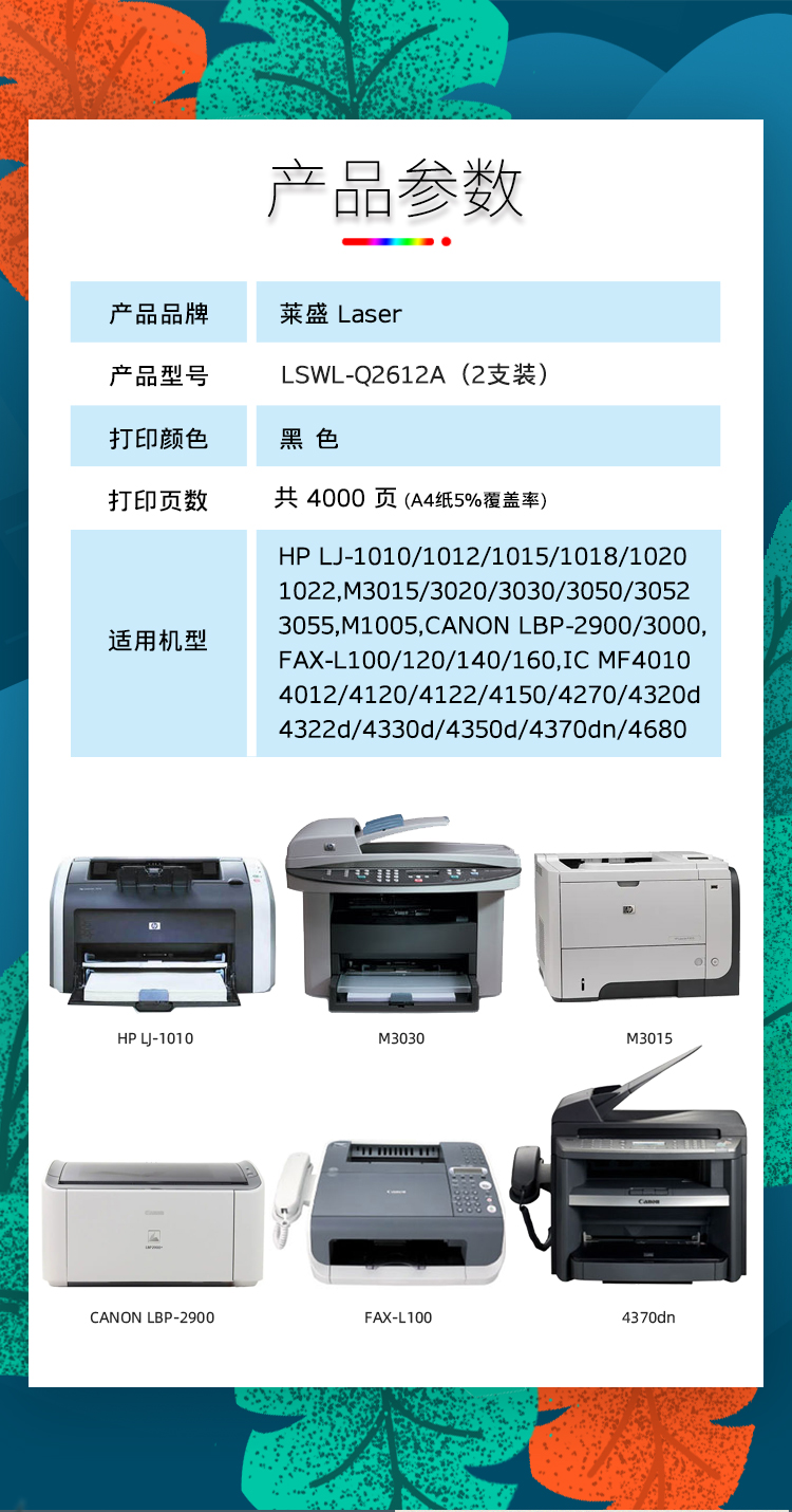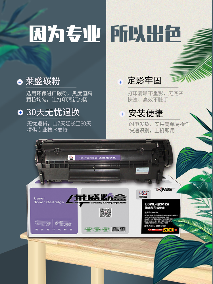 萊盛Q2612A黑色硒鼓2支裝 適用惠普HP 1010 1015 1018 1020 1022 M3015 3020佳能2900 MF4010 4680打印機墨盒