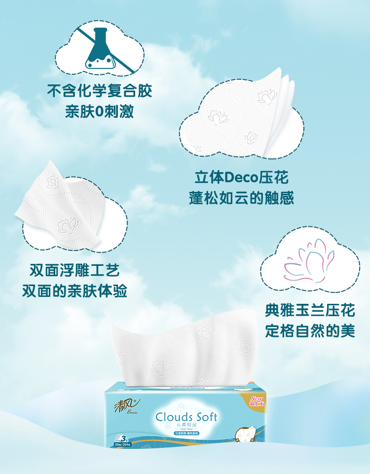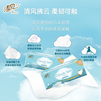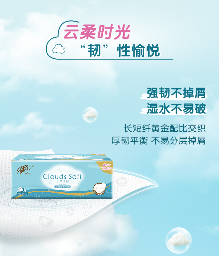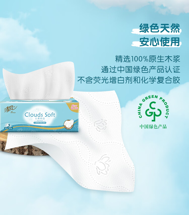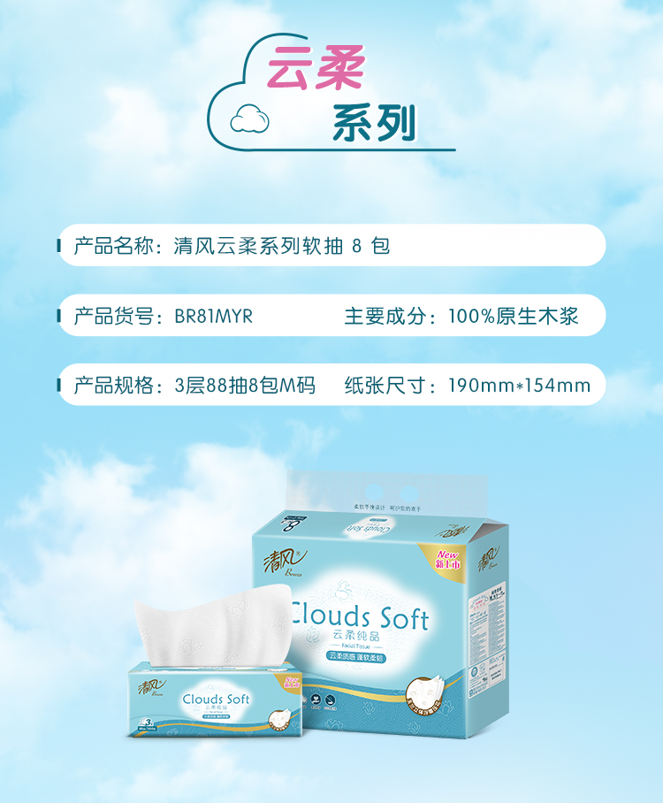 清風(fēng)抽紙 云柔純品3層88抽*8包 紙巾(真M碼)柔韌親膚 母嬰可用