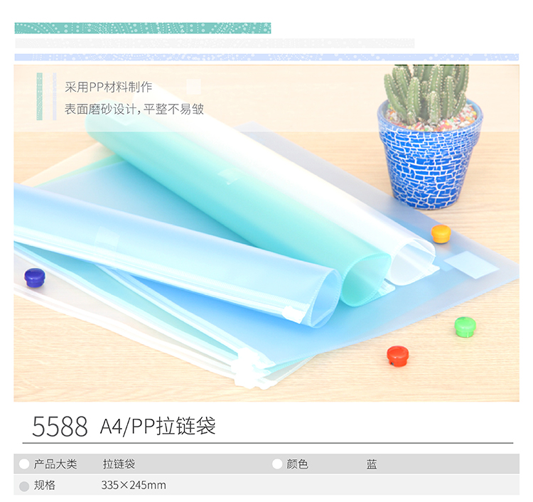 得力(deli)10只A4優(yōu)質(zhì)PP拉鏈袋 磨砂文件資料袋 藍(lán)5588