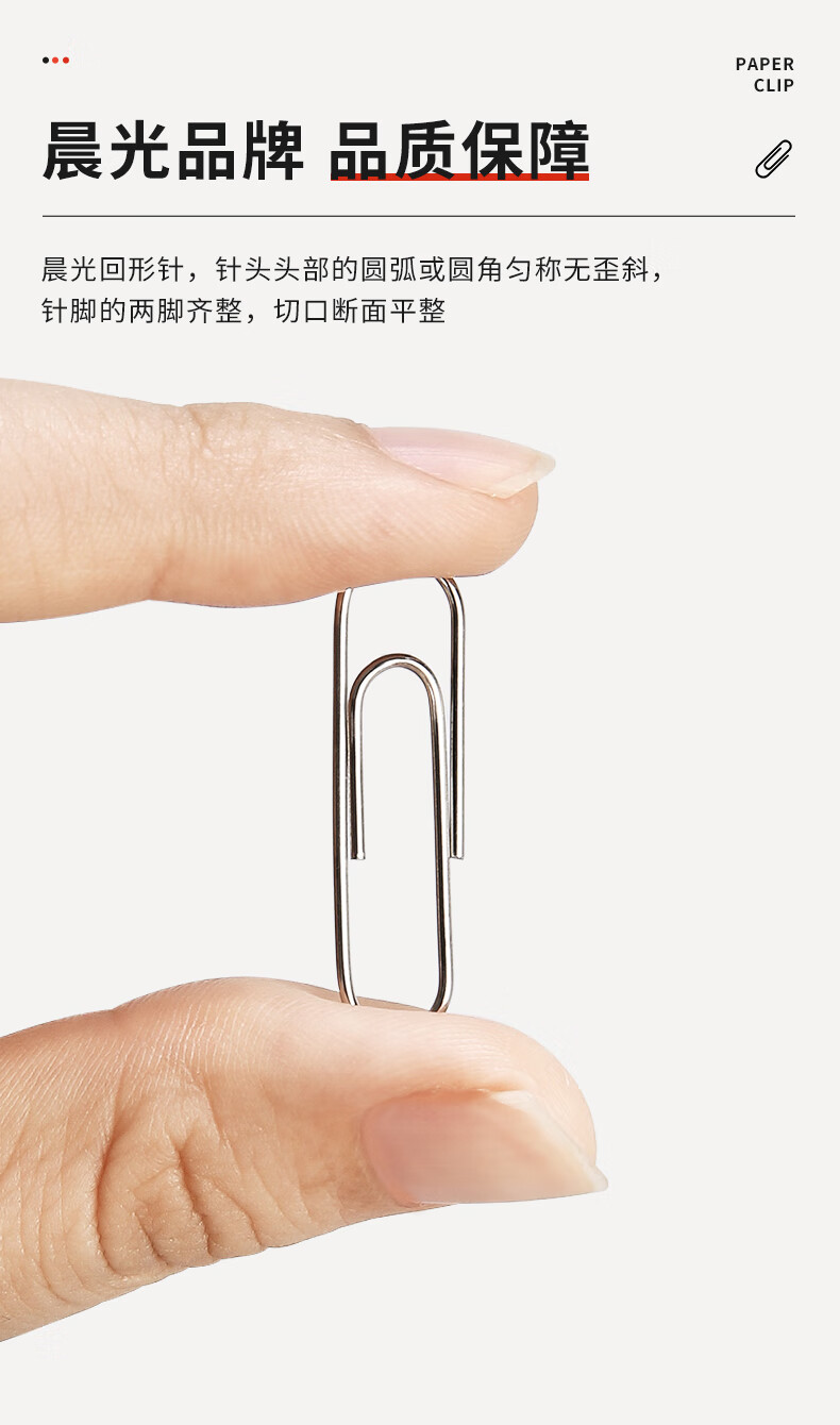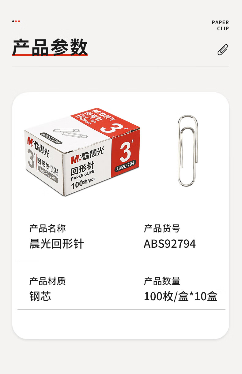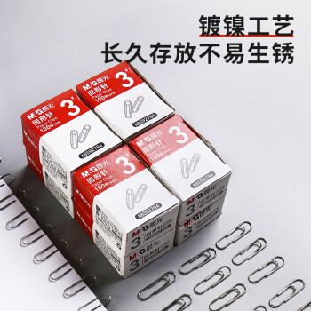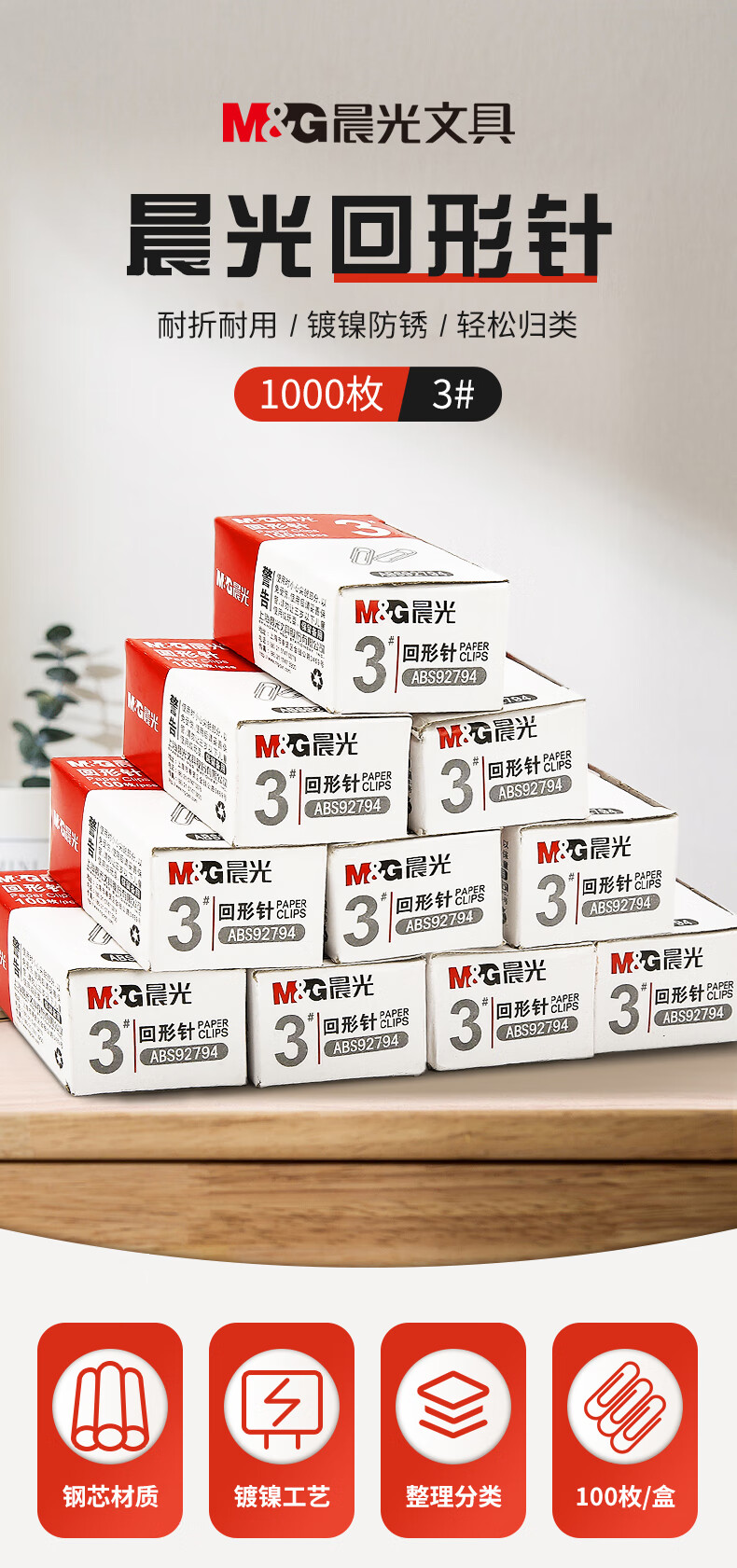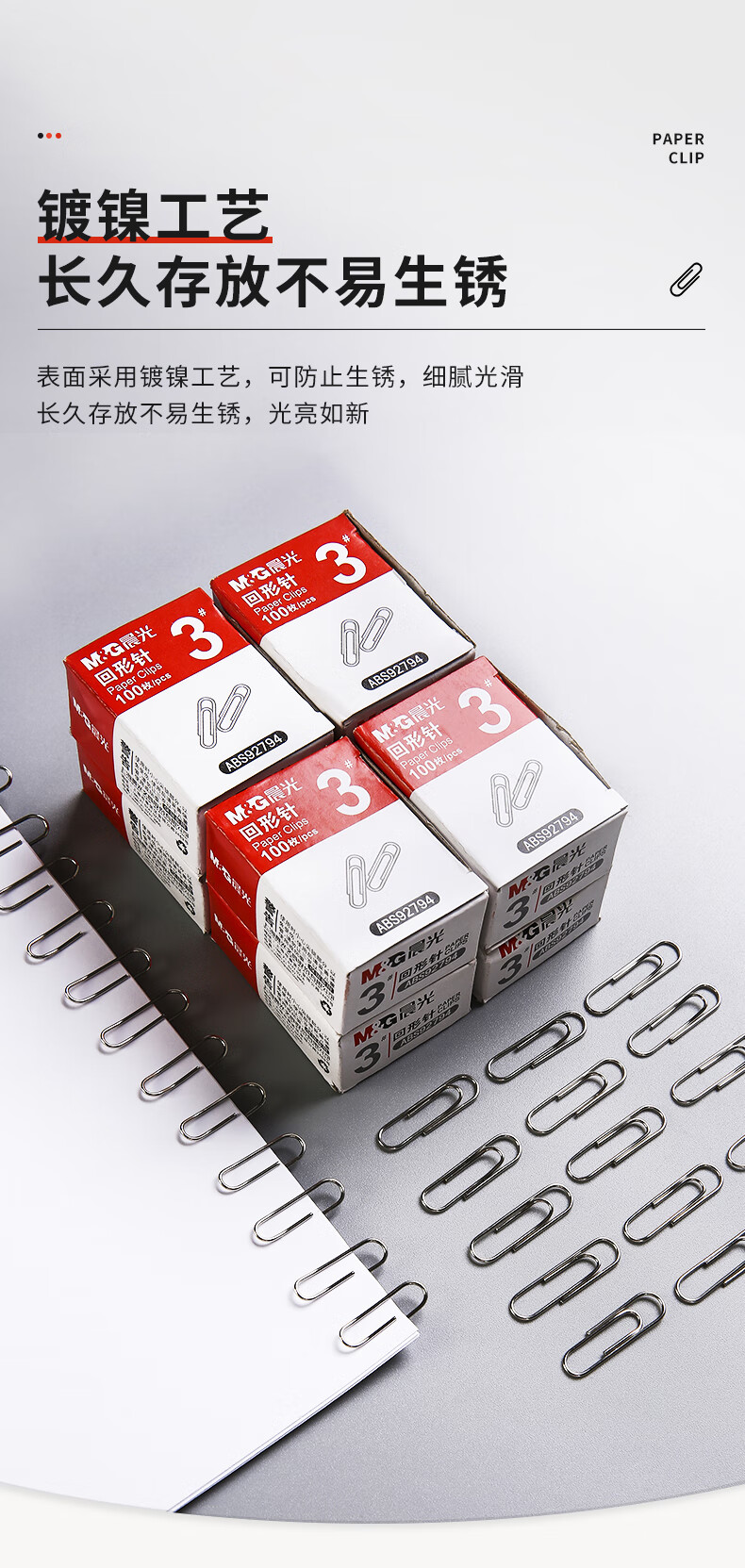 晨光(M&G)文具3#鍍鎳回形針 金屬防銹曲別針 辦公用品 100枚/盒 10盒裝ABS92794