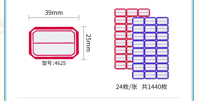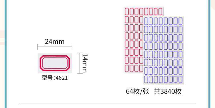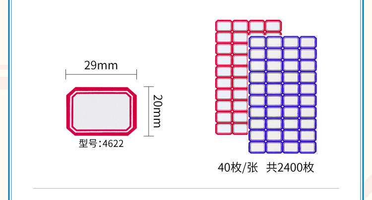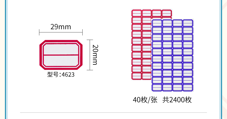 DSB 2400枚29×20mm不干膠標(biāo)簽貼紙自粘性標(biāo)貼 40枚/張 60張/包 易撕口取紙姓名貼價(jià)格貼4623紅色