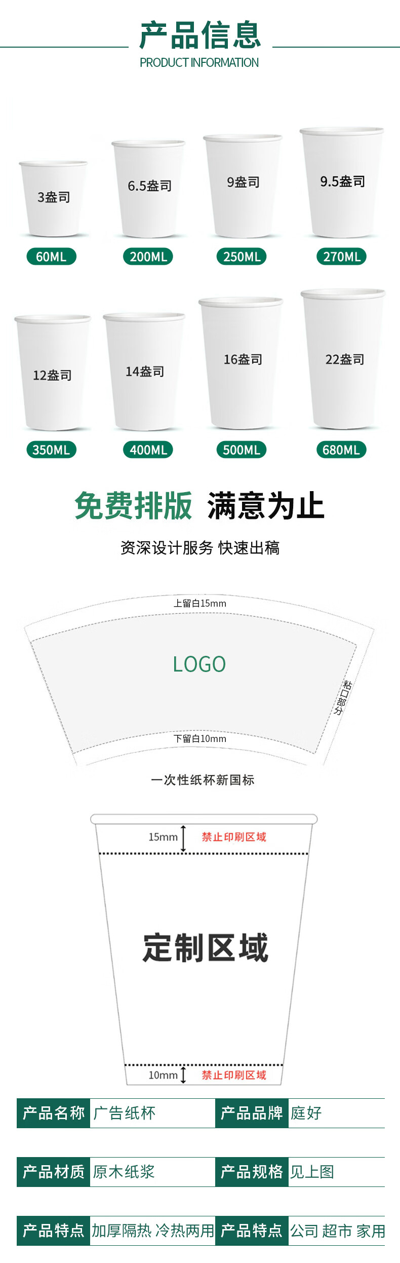 庭好B562 紙杯 一次性紙杯子定制印制logo武裝警察形象水杯廣告紙杯定做 9盎司特厚1000只裝