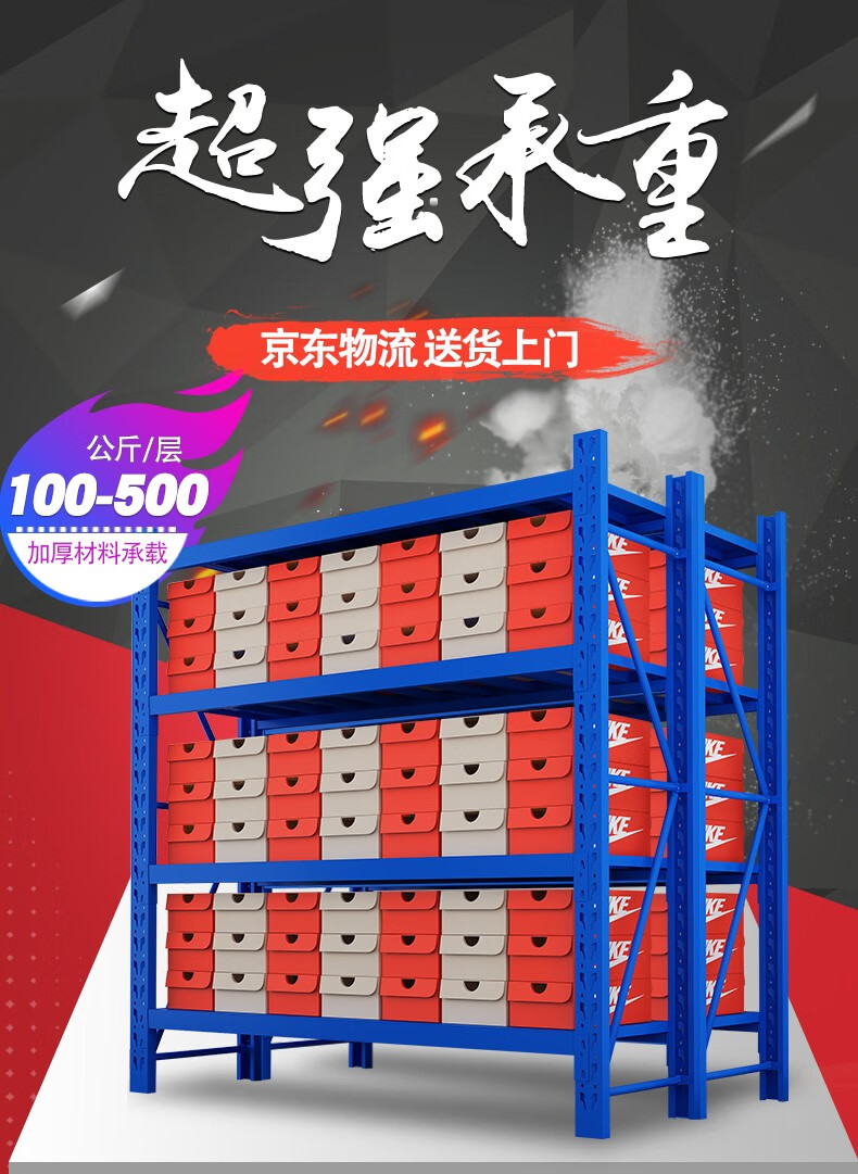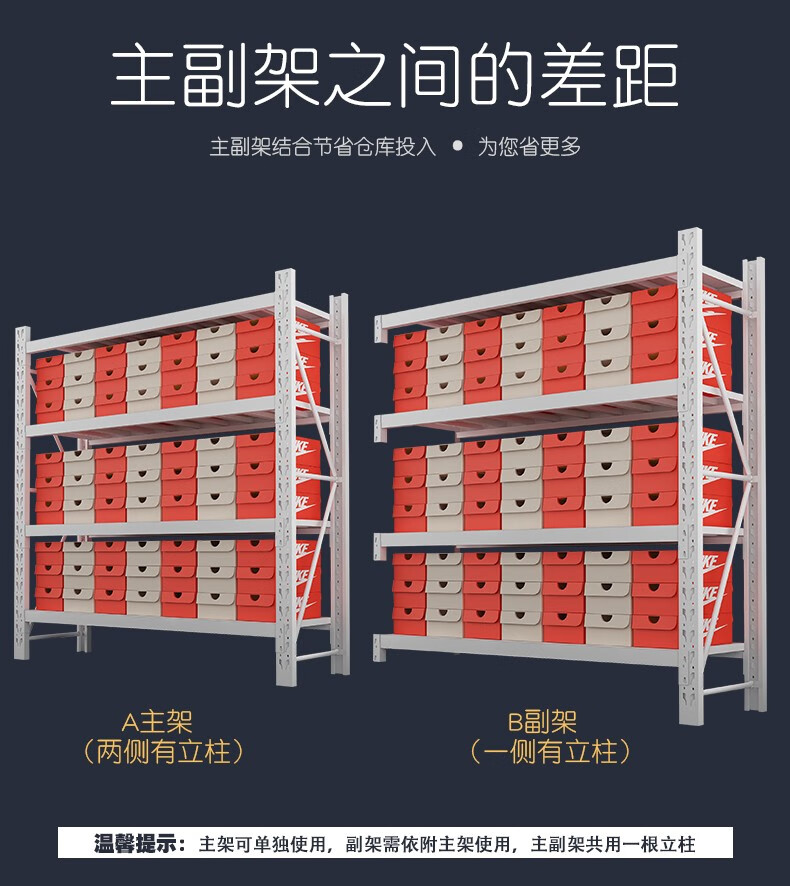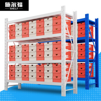 施爾福 貨架HN589倉儲家用置物架輕型倉庫庫房展示架金屬層架中型貨物架子 白色-四層-主架 輕型貨架 長120* 寬40* 高200cm