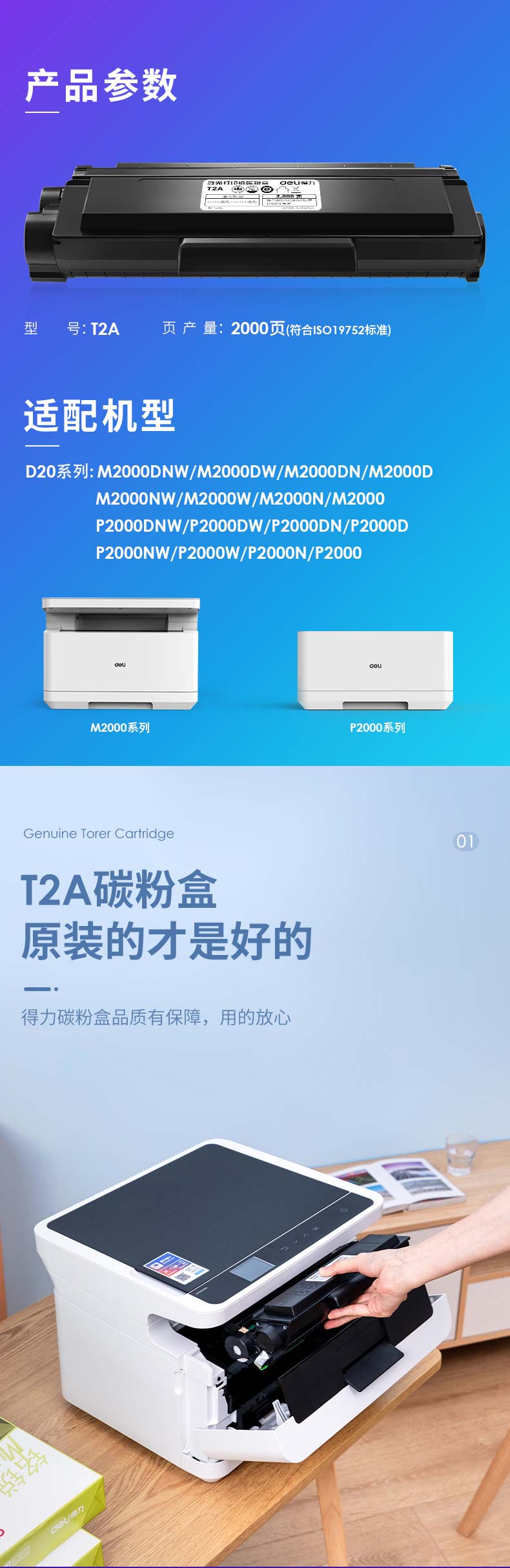得力T2A 原裝硒鼓 碳粉盒 標(biāo)準(zhǔn)容量 適用于得力P2000系列 M2000系列設(shè)備2000頁