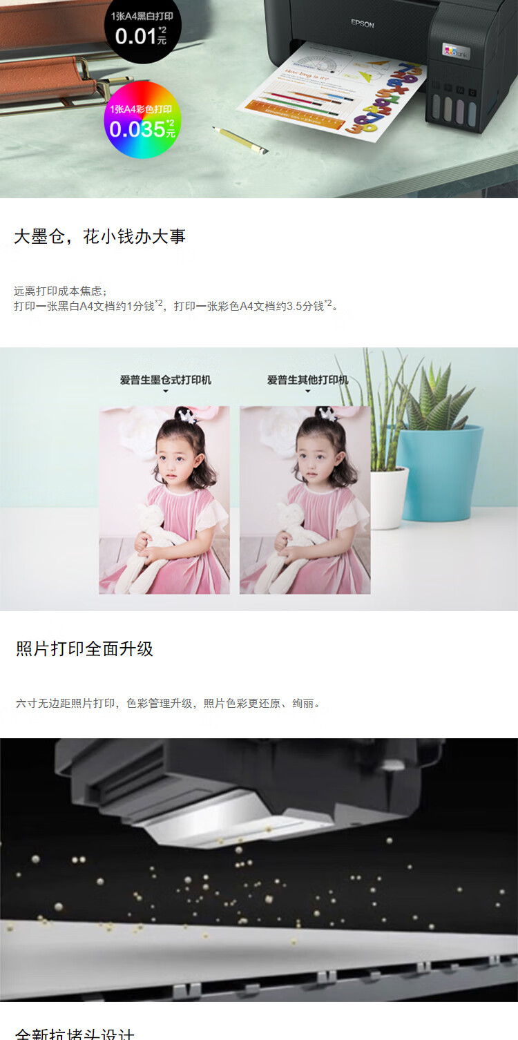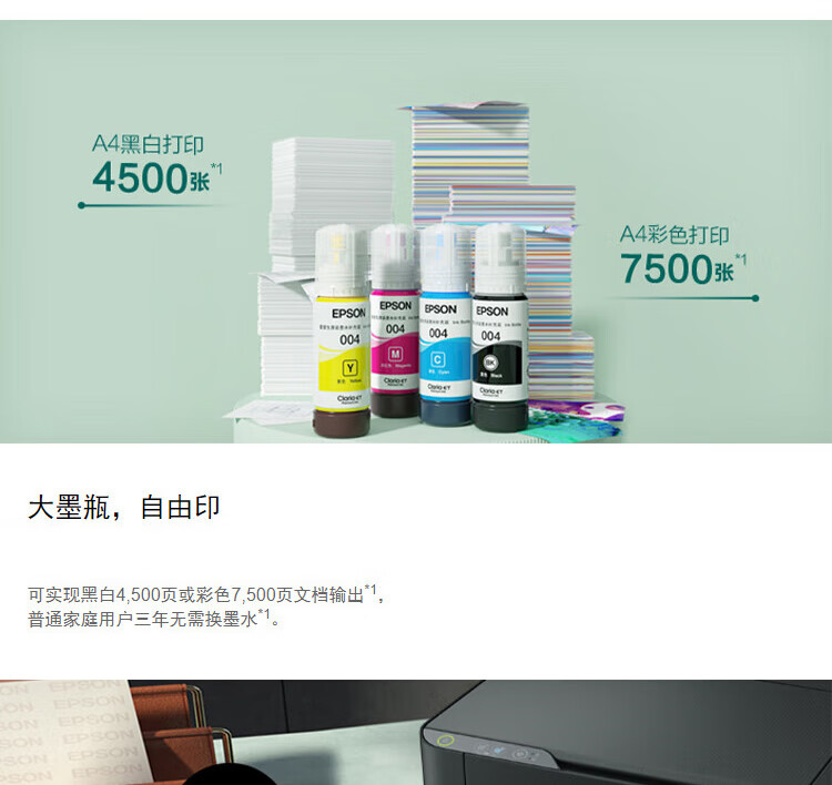 愛普生(EPSON)L3219 連供家用彩色多功能一體機(jī) A4 打印復(fù)印掃描 墨倉(cāng)式打印機(jī) 大墨水 黑色機(jī)身