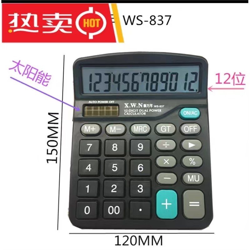 國產(chǎn) 新萬年 電子計算器 WS-837經(jīng)濟實惠型12位陽能加電池多功能語音屏幕計算器