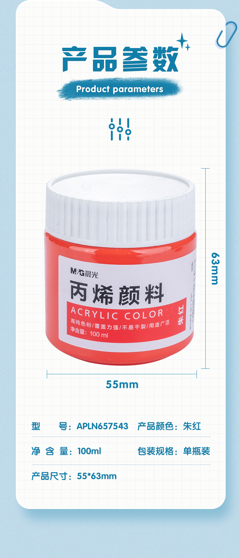晨光(M&G)書(shū)寫(xiě)繪畫(huà)用具 APLN657543 文具100ml丙烯顏料朱紅色 美術(shù)手繪顏料 美術(shù)專用丙烯畫(huà)顏料 學(xué)生寫(xiě)生繪畫(huà)工具APLN657543開(kāi)學(xué)禮物