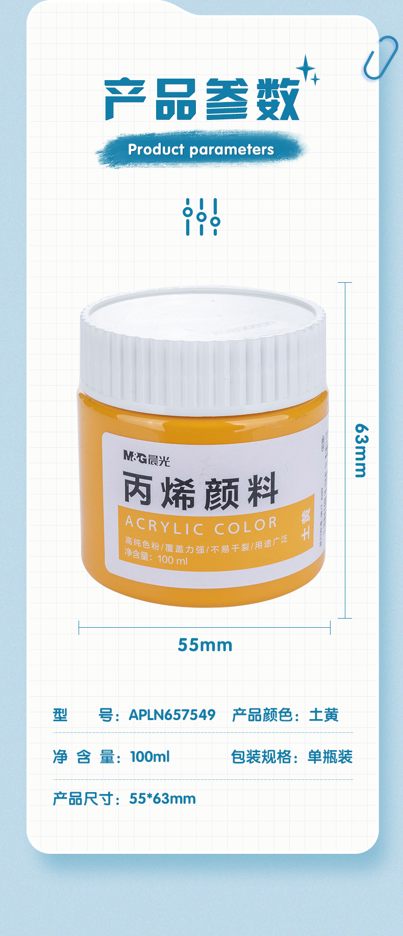 晨光(M&G)書法繪畫用具 APLN657549 文具100ml丙烯顏料土黃色 美術(shù)手繪顏料 美術(shù)專用丙烯畫顏料 學(xué)生寫生繪畫工具APLN657549開學(xué)禮物