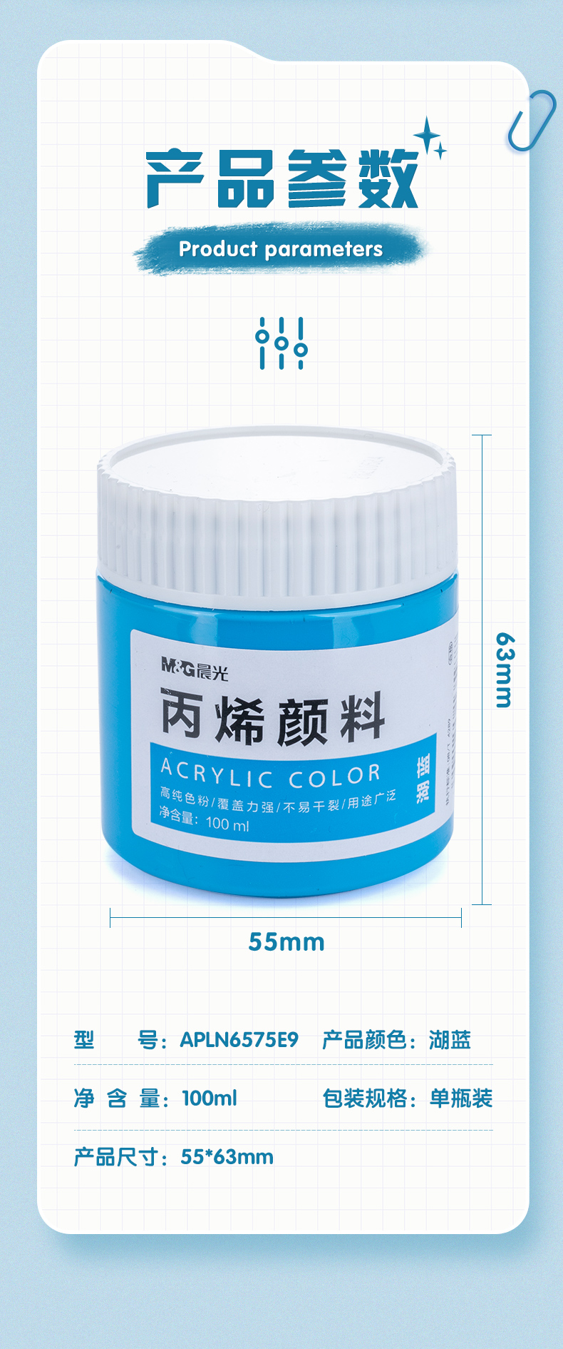 晨光(M&G)書法繪畫用具APLN6575E9 文具100ml丙烯顏料湖藍(lán)色 美術(shù)手繪顏料 美術(shù)專用丙烯畫顏料 學(xué)生寫生繪畫工具APLN6575E9開學(xué)禮物