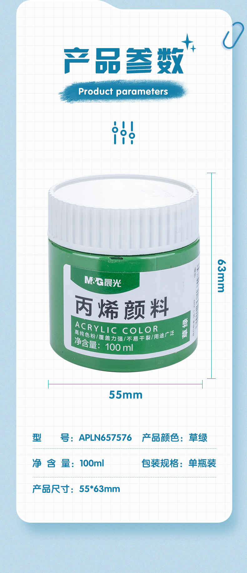 晨光(M&G)書(shū)法繪畫(huà)用具APLN657576 丙烯顏料100ml草綠色 美術(shù)手繪顏料 丙烯畫(huà)顏料 學(xué)生寫生繪畫(huà)工具