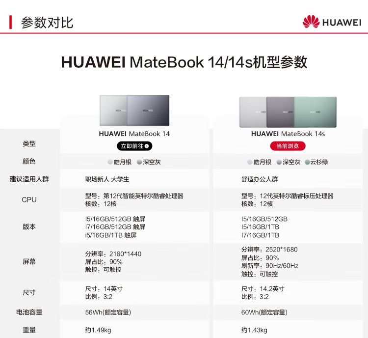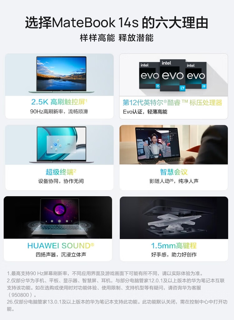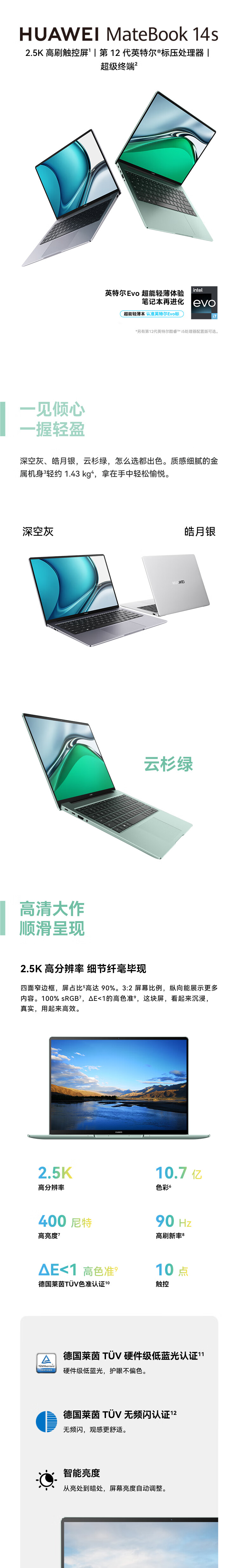 華為 便攜式計(jì)算機(jī) MateBook 14s筆記本電腦 2022 英特爾Evo 12代酷睿標(biāo)壓i5 16+512G/14.2英寸90Hz觸控/輕薄本