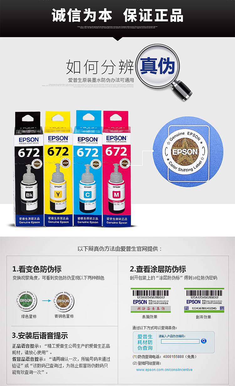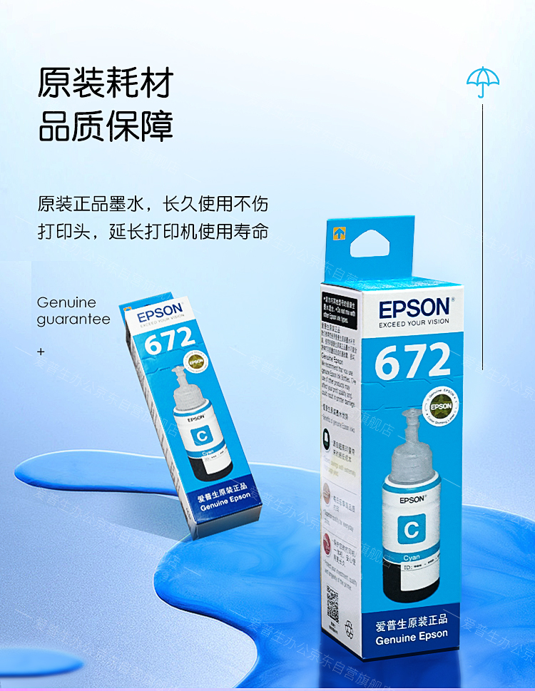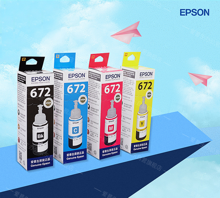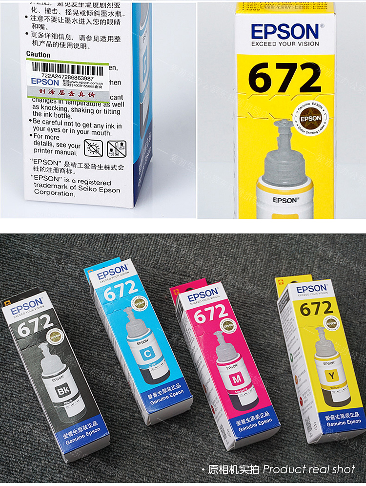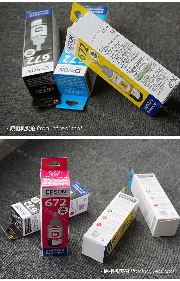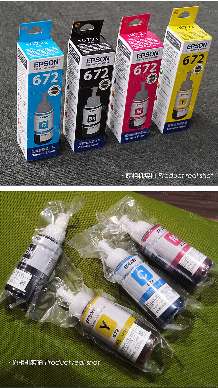 愛普生/EPSON T672 墨水/補(bǔ)充液/墨囊 墨水適用于L221/L363/L351/L565/L455 墨倉式打印機(jī)墨水T672系列四色套裝 原裝 墨水