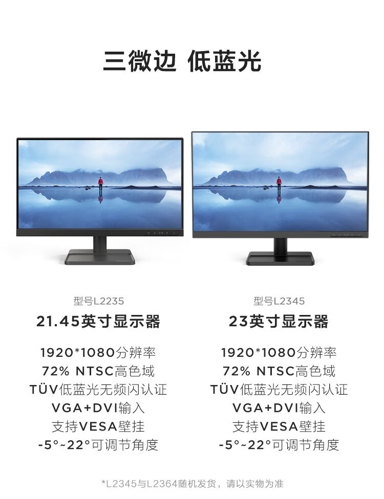 聯(lián)想(Lenovo)液晶顯示器 L2235 商務(wù)辦公家用 低藍(lán)光 高色域 顯示屏 21.5英寸 VGA+DVI接口