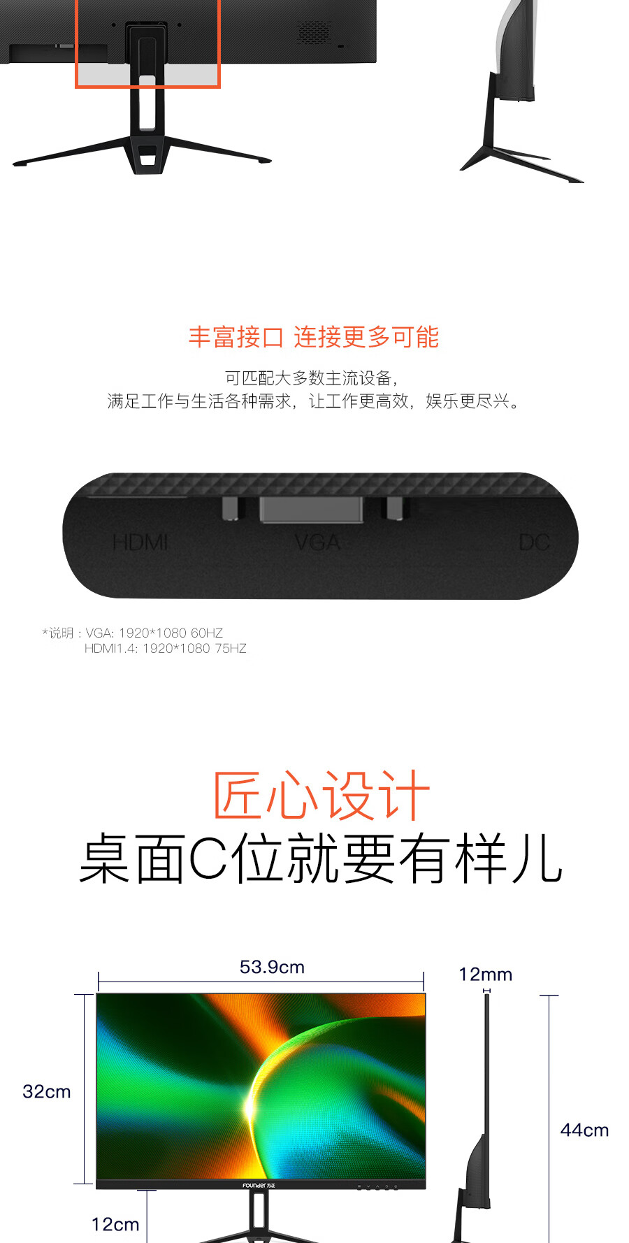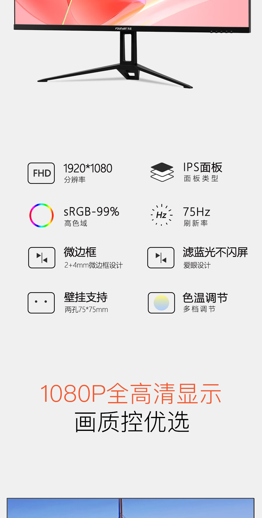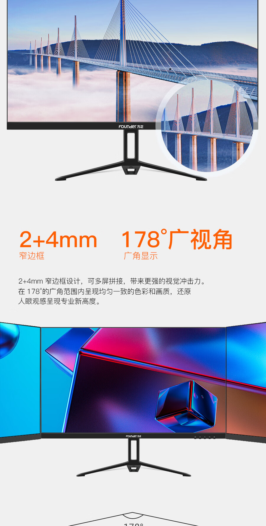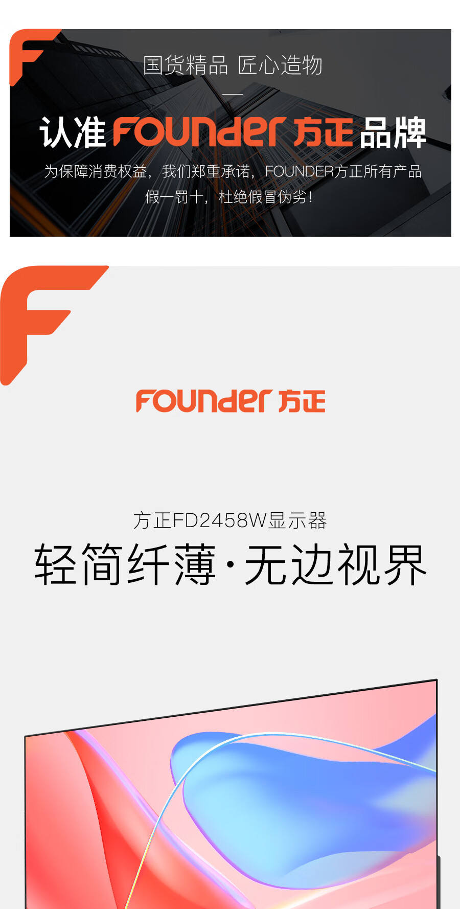 方正(Founder)液晶顯示器 FD2458w顯示器23.8英寸 IPS全高清 微邊框 電競游戲辦公低藍光不閃屏可壁掛 電腦屏幕