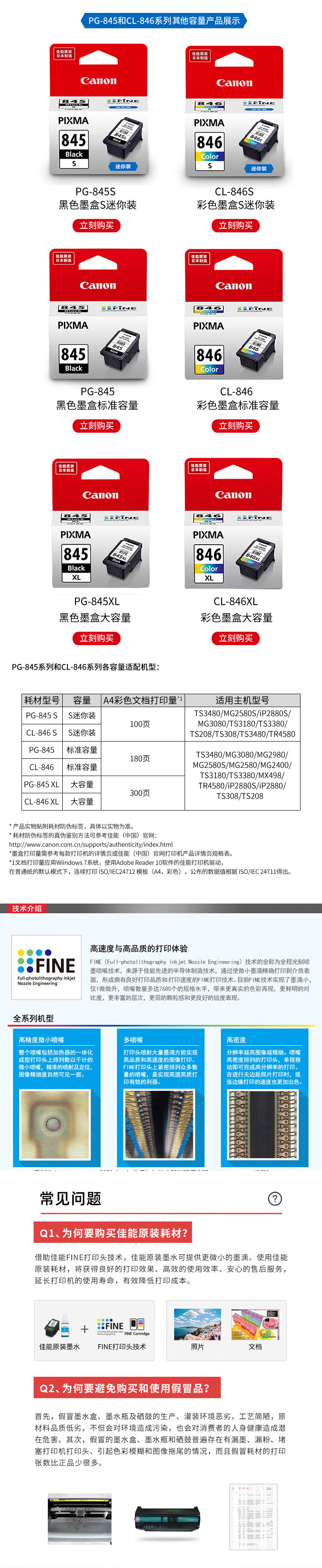 佳能/Canon 噴墨盒 CL-846 彩色墨盒(適用MG3080/MG2580S/MG2400/TS3480/TS3380/TS308/TS208/TR4580) 846