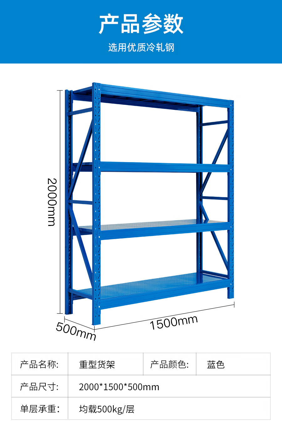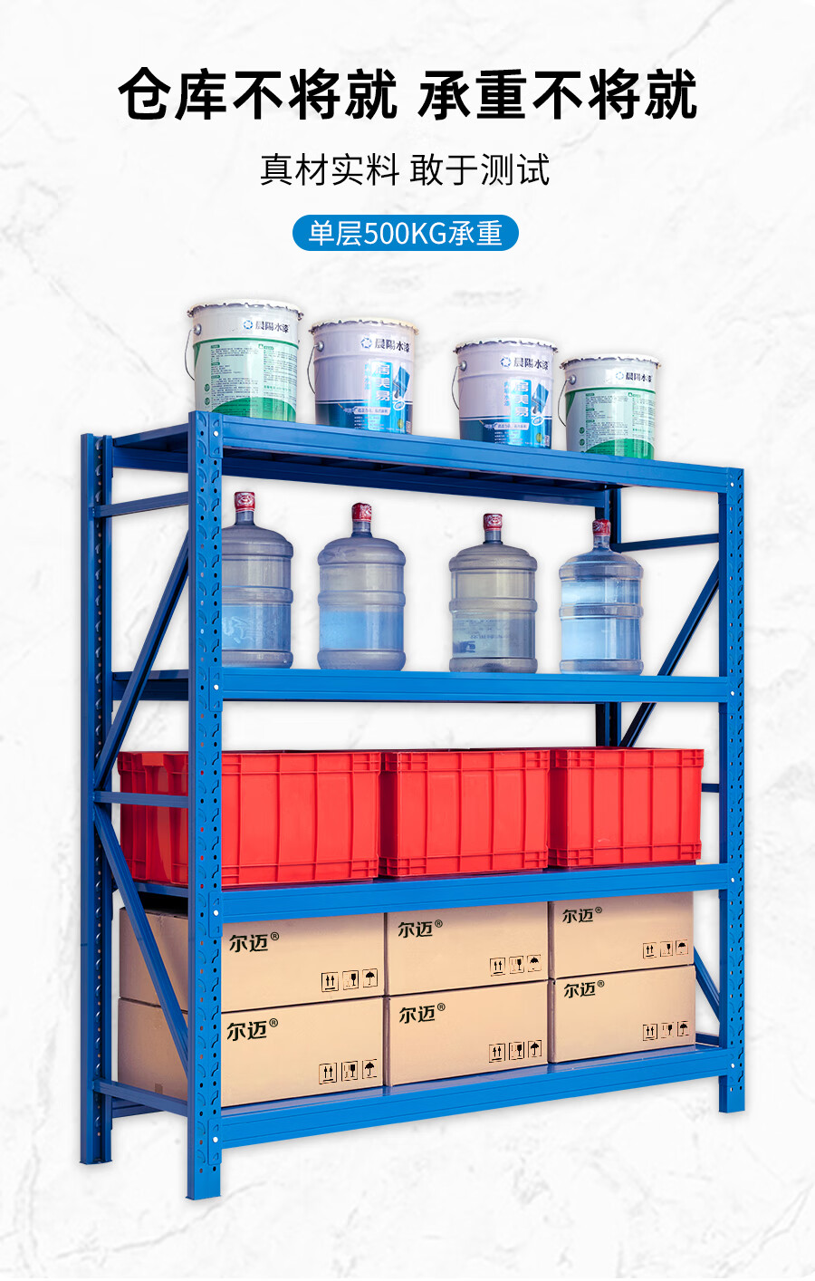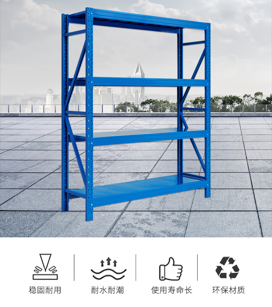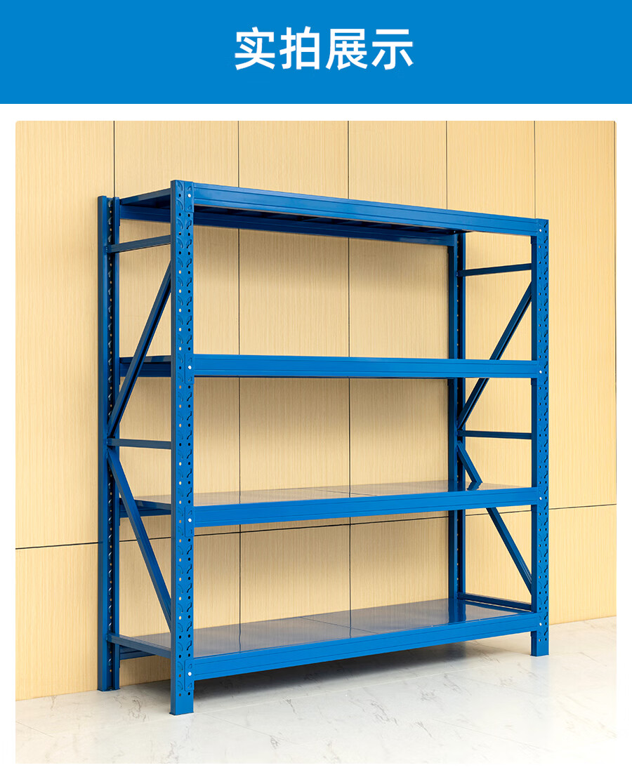 爾邁 倉儲貨架N895 貨物展示架鋼制重型200*150*50cm 500kg/層藍色