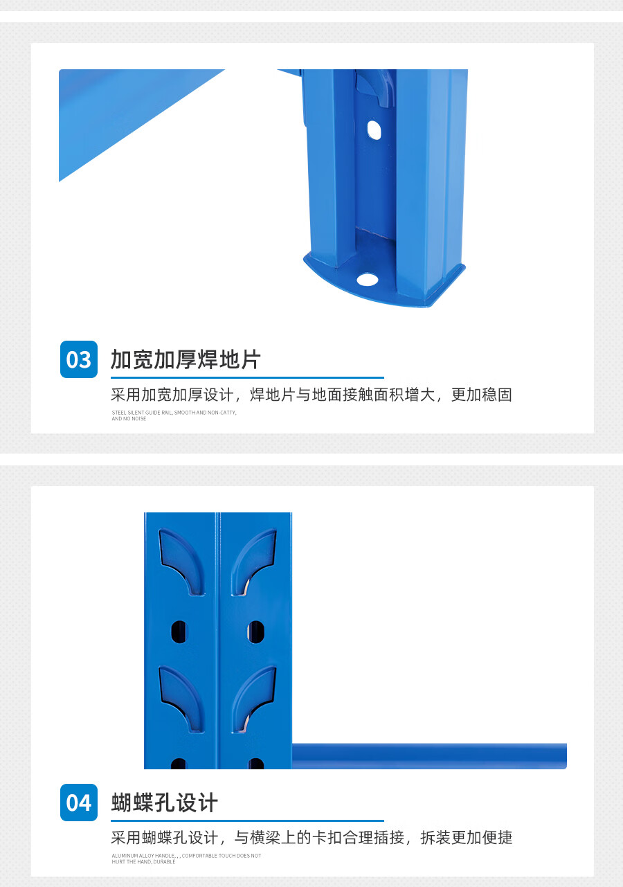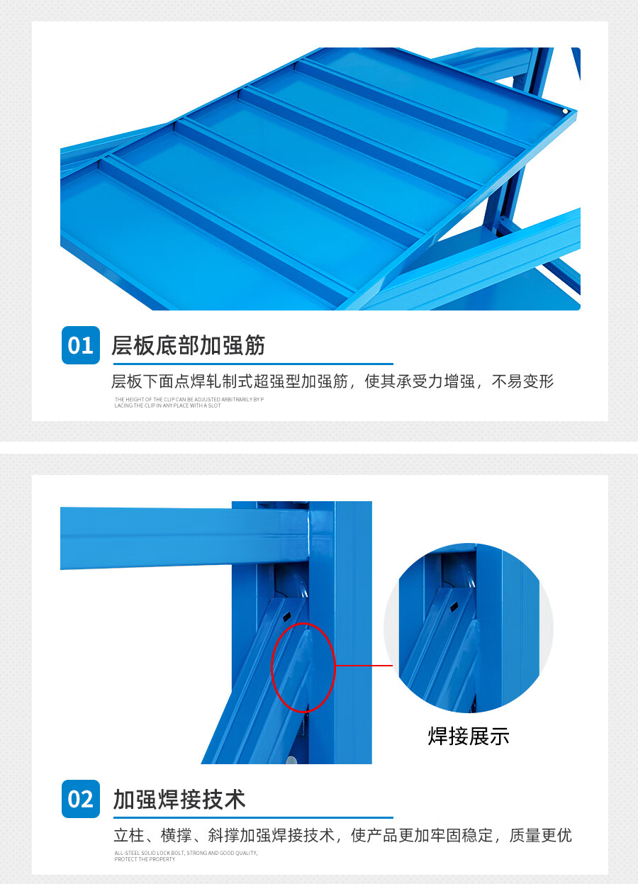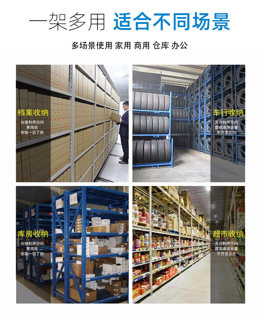 爾邁 倉儲貨架N895 貨物展示架鋼制重型200*150*50cm 500kg/層藍色