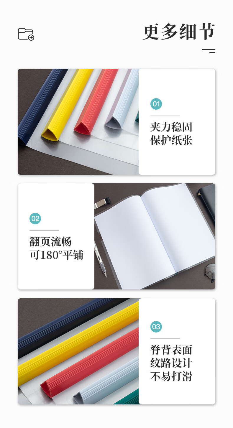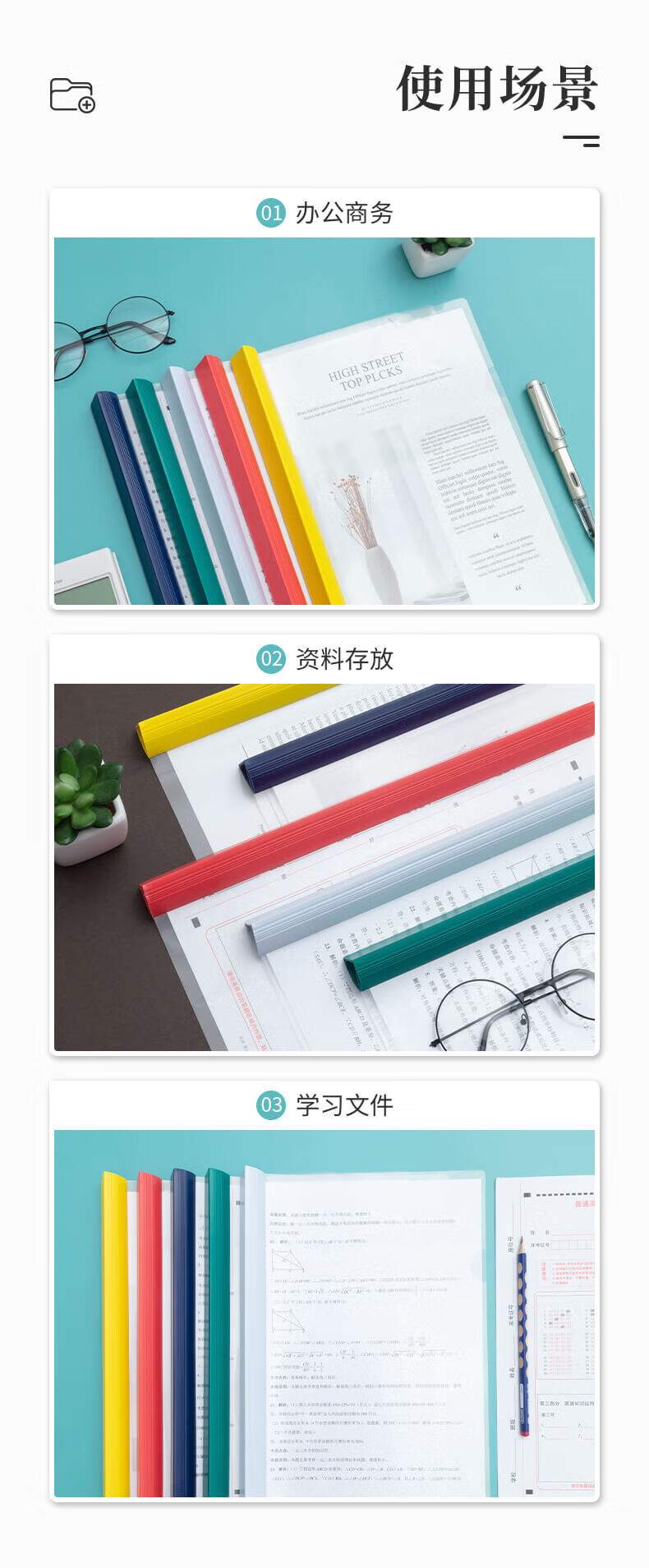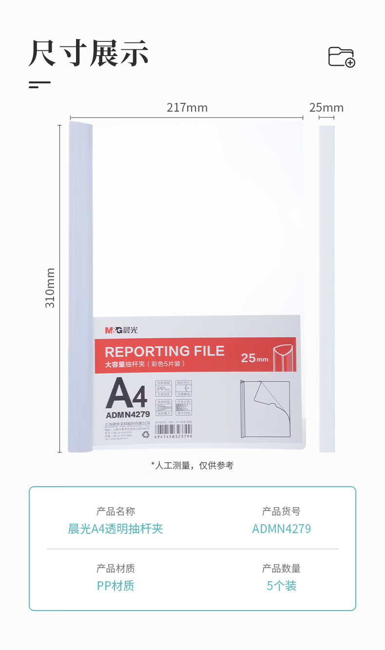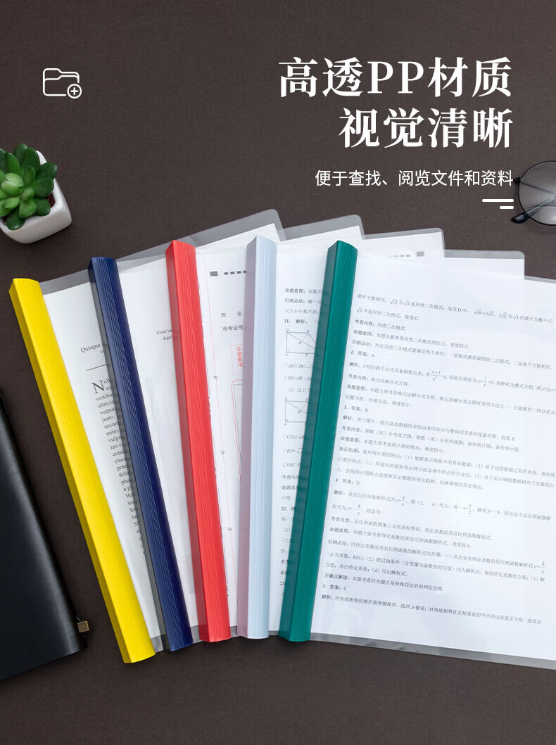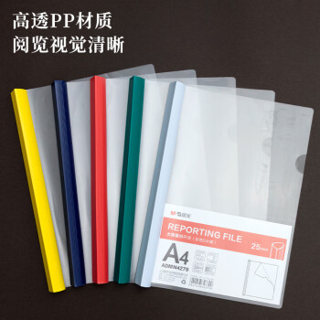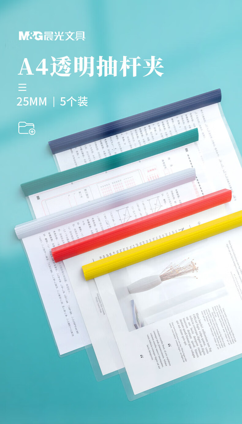 晨光(M&G)文件夾抽桿夾ADMN42799透明彩色 大容量辦公報告夾拉桿夾 學生考試收納資料整理文件夾 5個裝A4/25mm