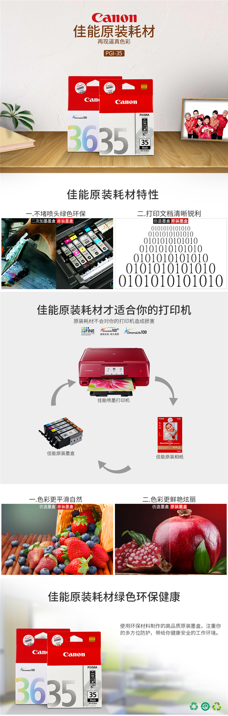 佳能(Canon)噴墨盒 PGI-35 原裝黑色墨盒適用PIXMA iP100 iP110