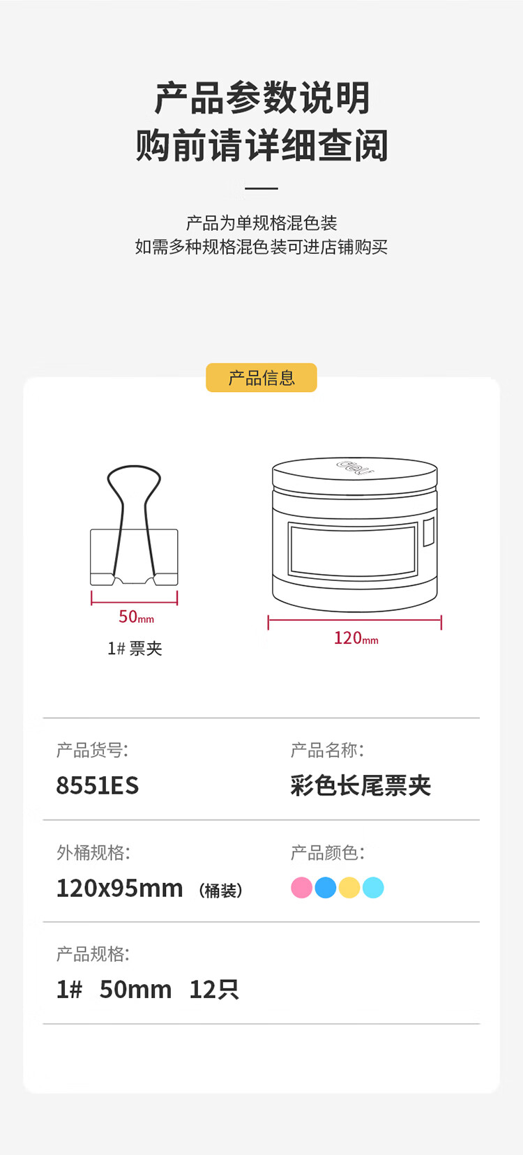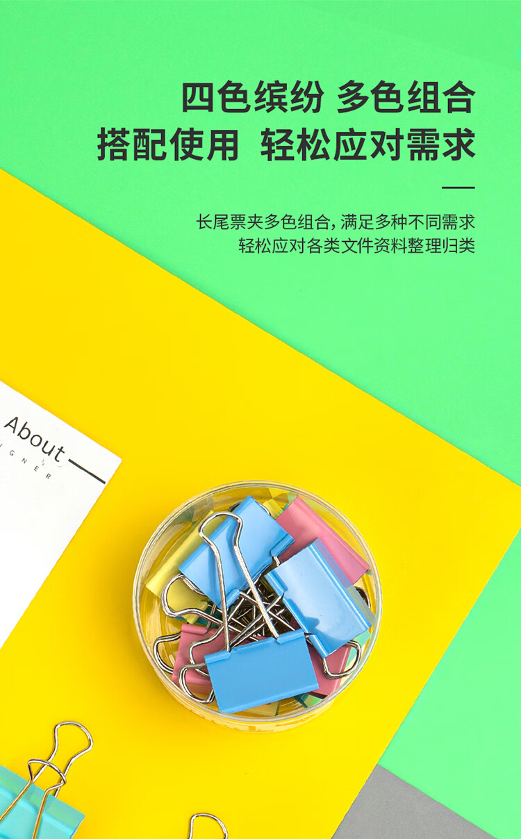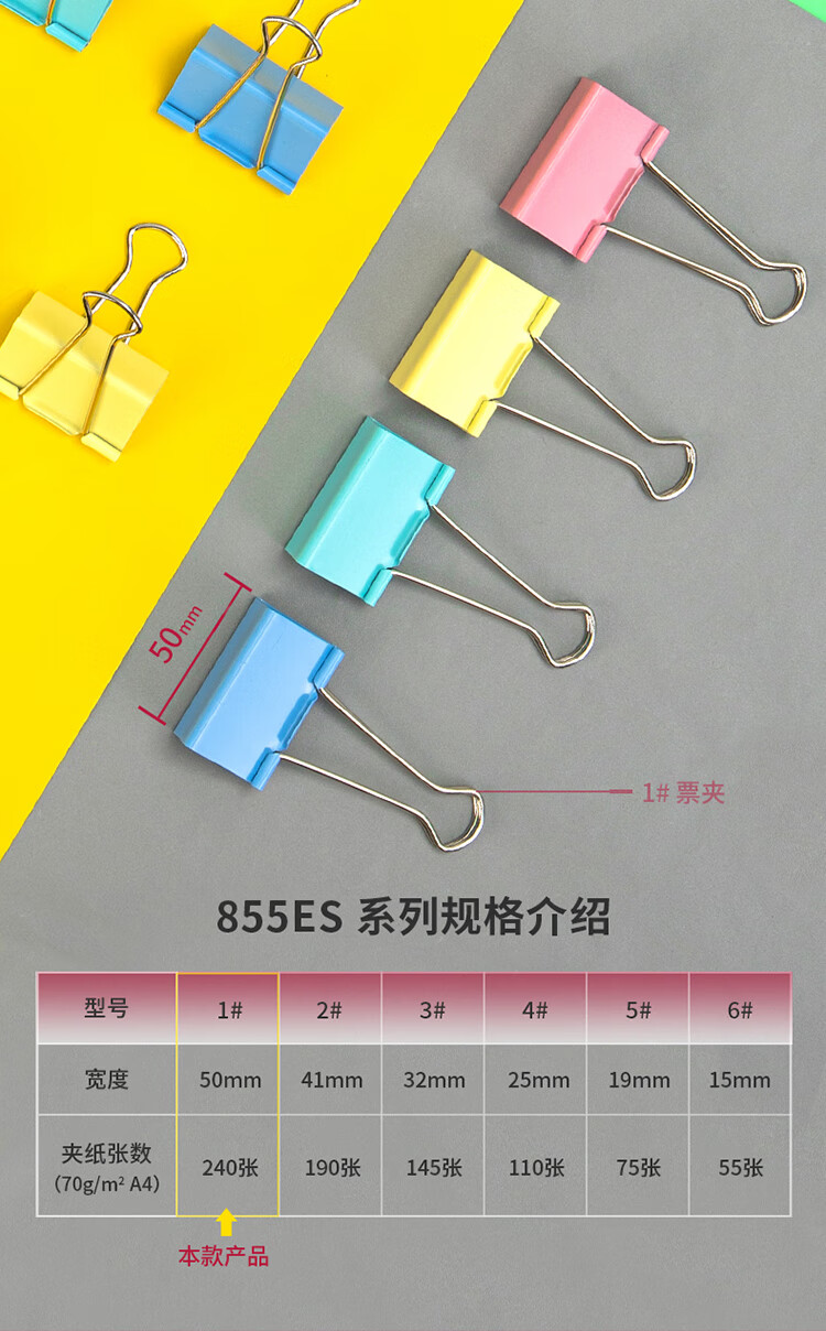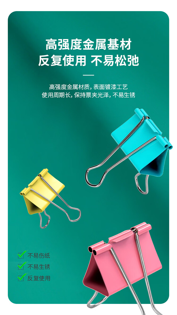 得力(deli) 彩色長(zhǎng)尾夾票夾 1# 50mm超大號(hào)金屬燕尾夾票據(jù)文件夾子