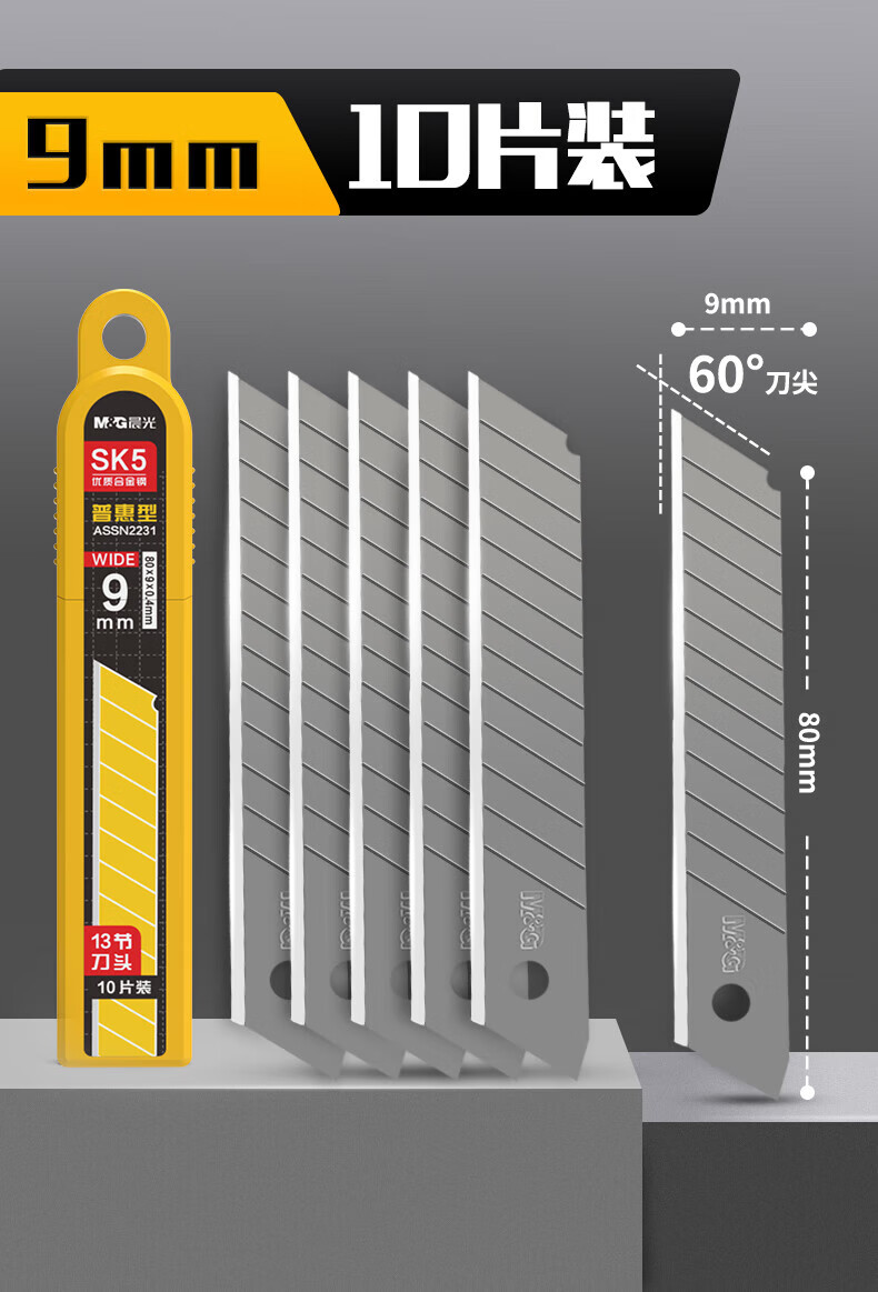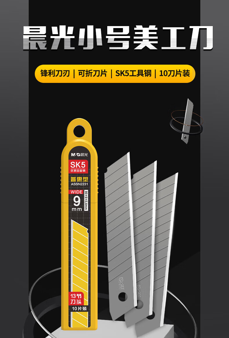 晨光(M&G) ASSN2231 刀片/美工刀片 13刀頭SK5合金鋼刀片/替換刀片 10片/盒 小號 9mm 【刀片/1盒】