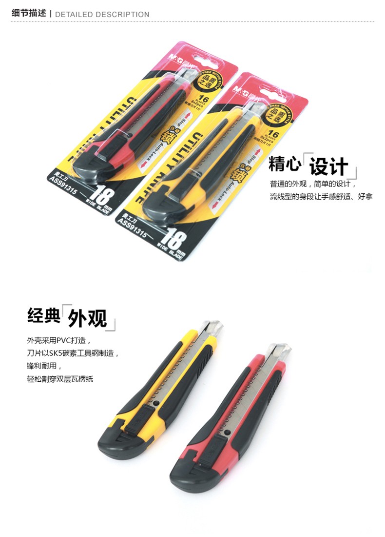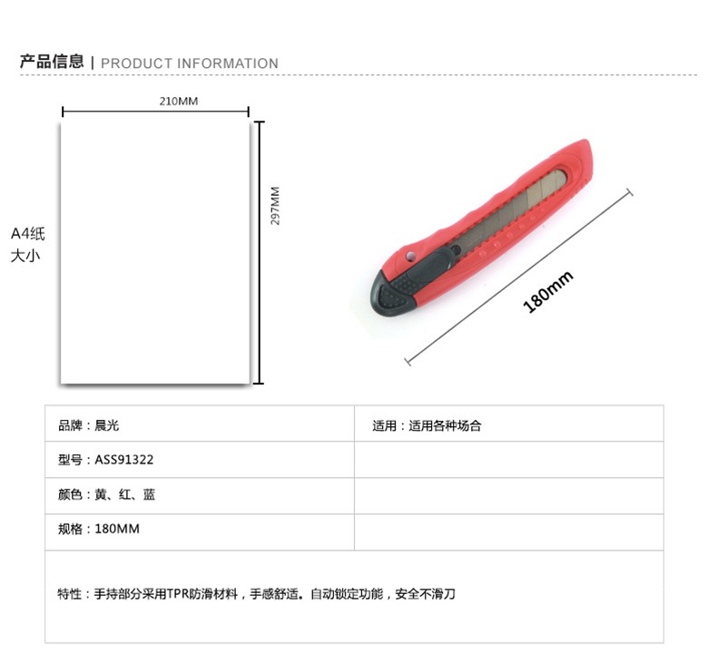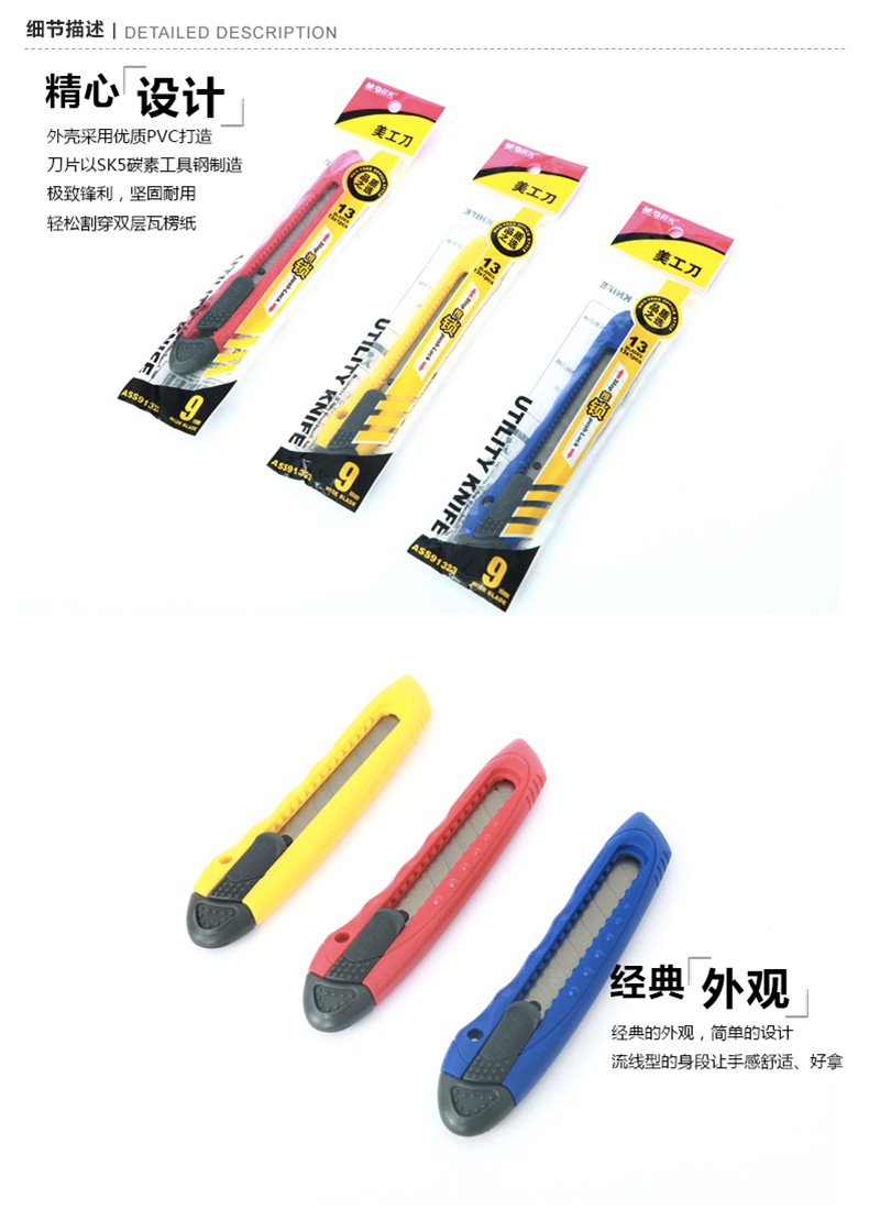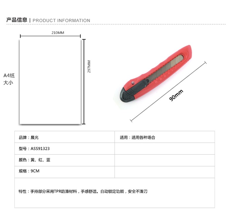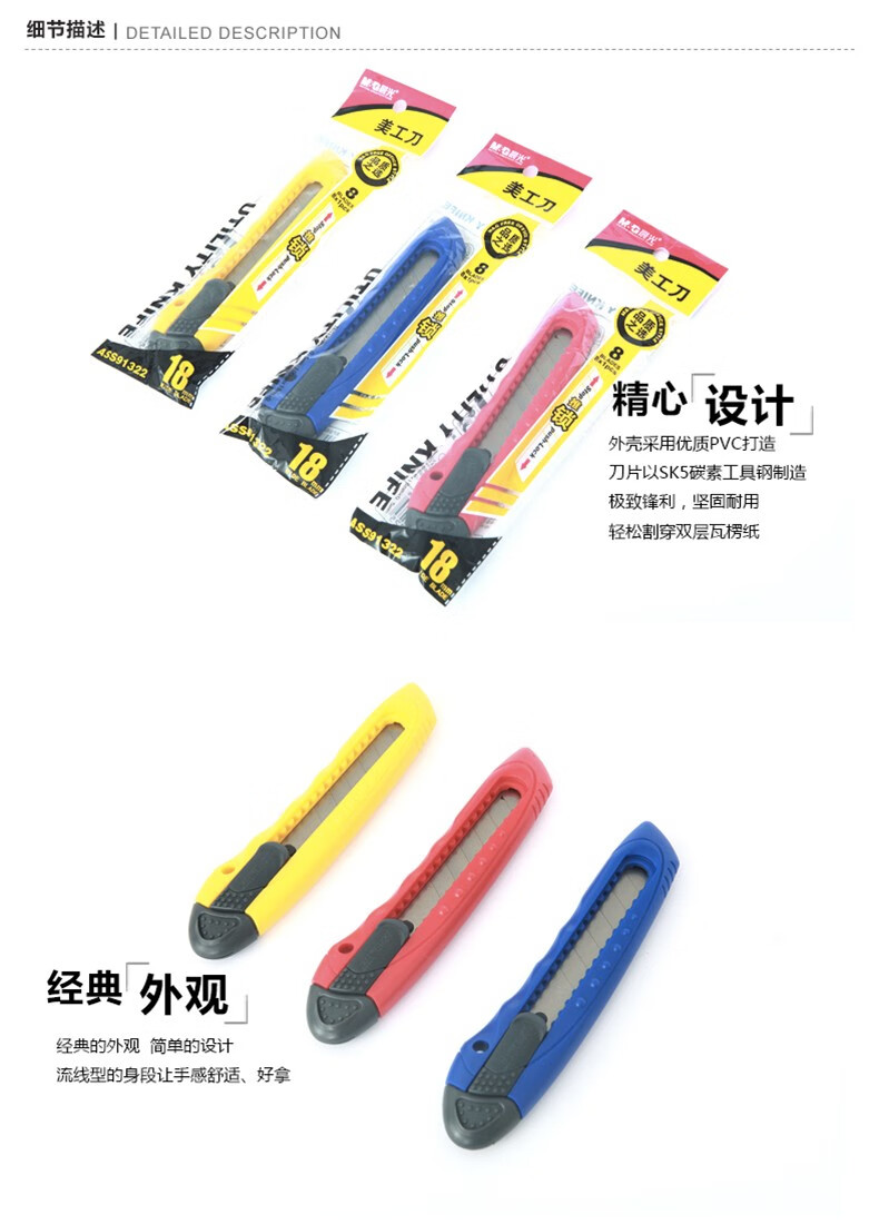晨光(M&G) 美工刀 ASS91323 裁紙刀 壁紙刀迷你 美工刀 裁紙刀刀片 單個(gè)裝顏色隨機(jī) 單把裝