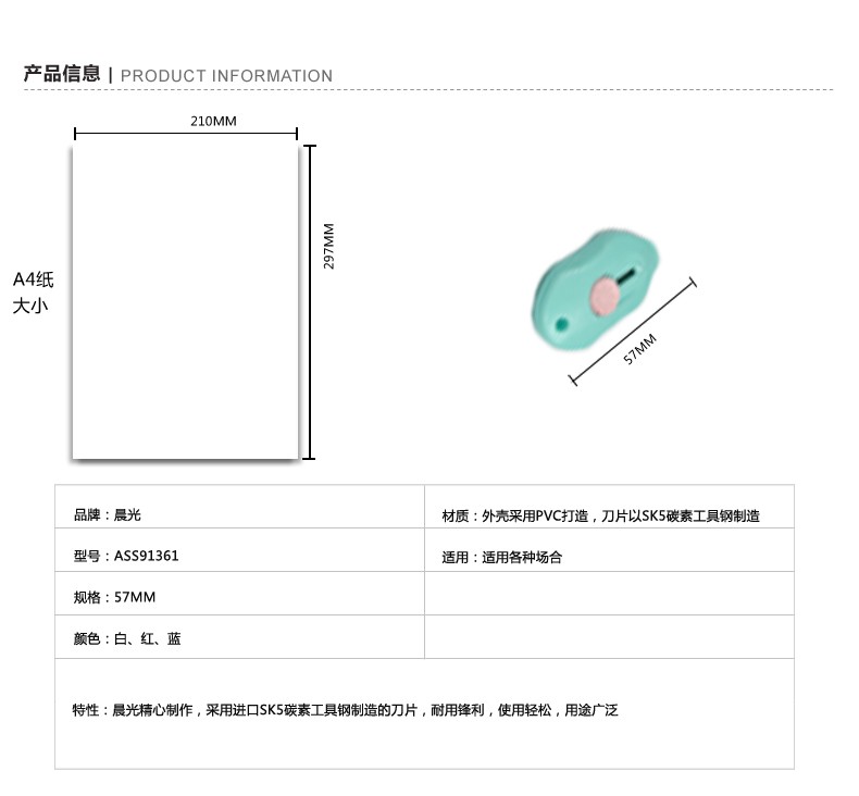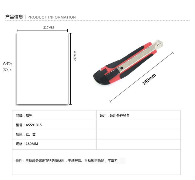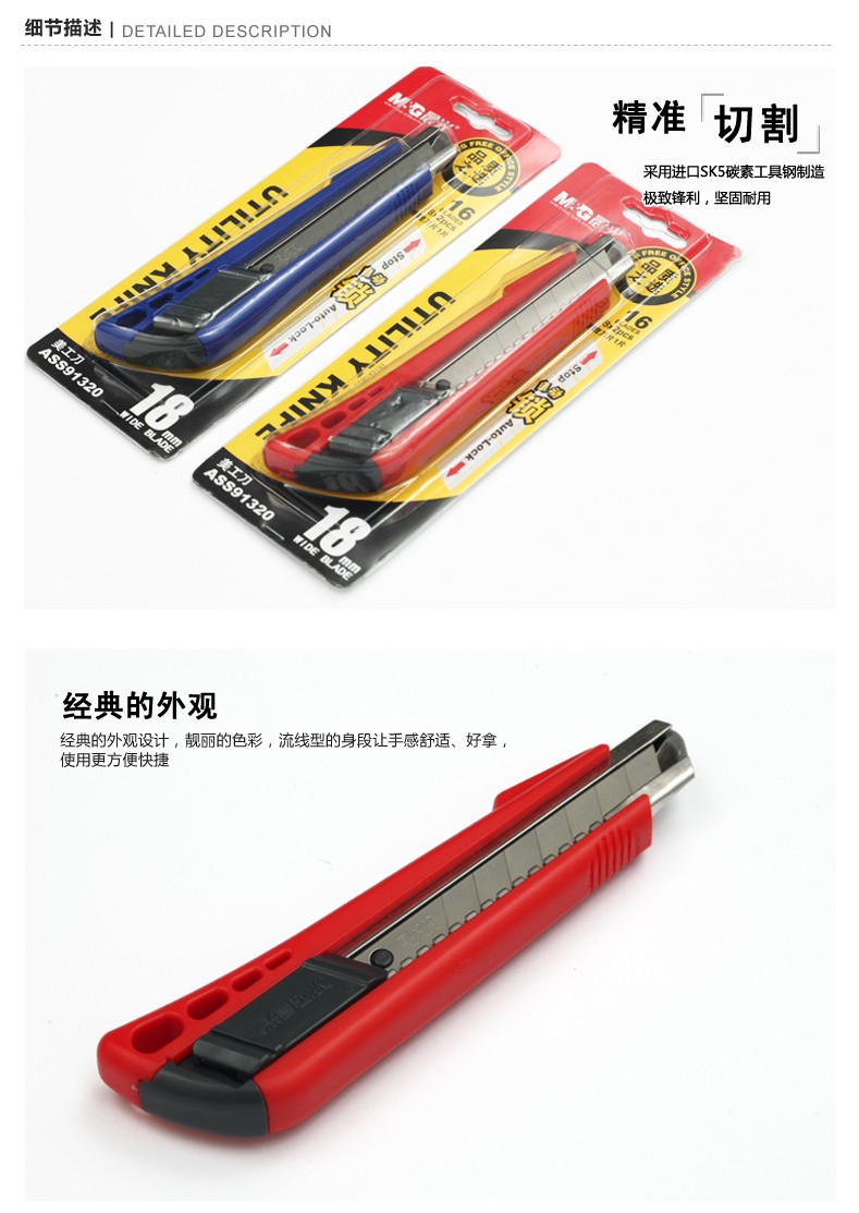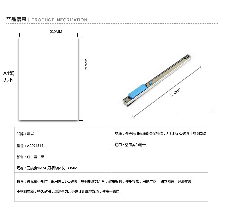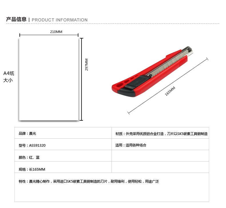 晨光(M&G) 美工刀 ASS91323 裁紙刀 壁紙刀迷你 美工刀 裁紙刀刀片 單個(gè)裝顏色隨機(jī) 單把裝