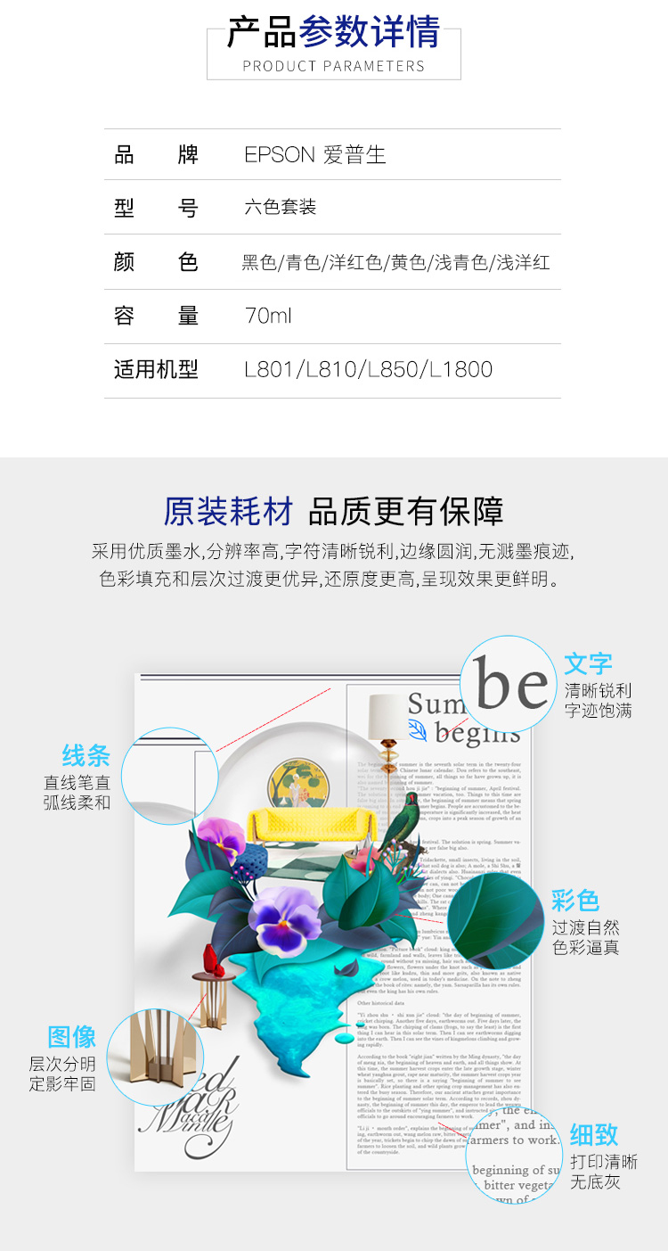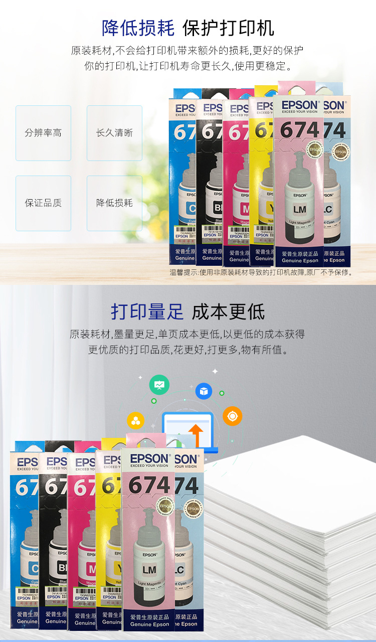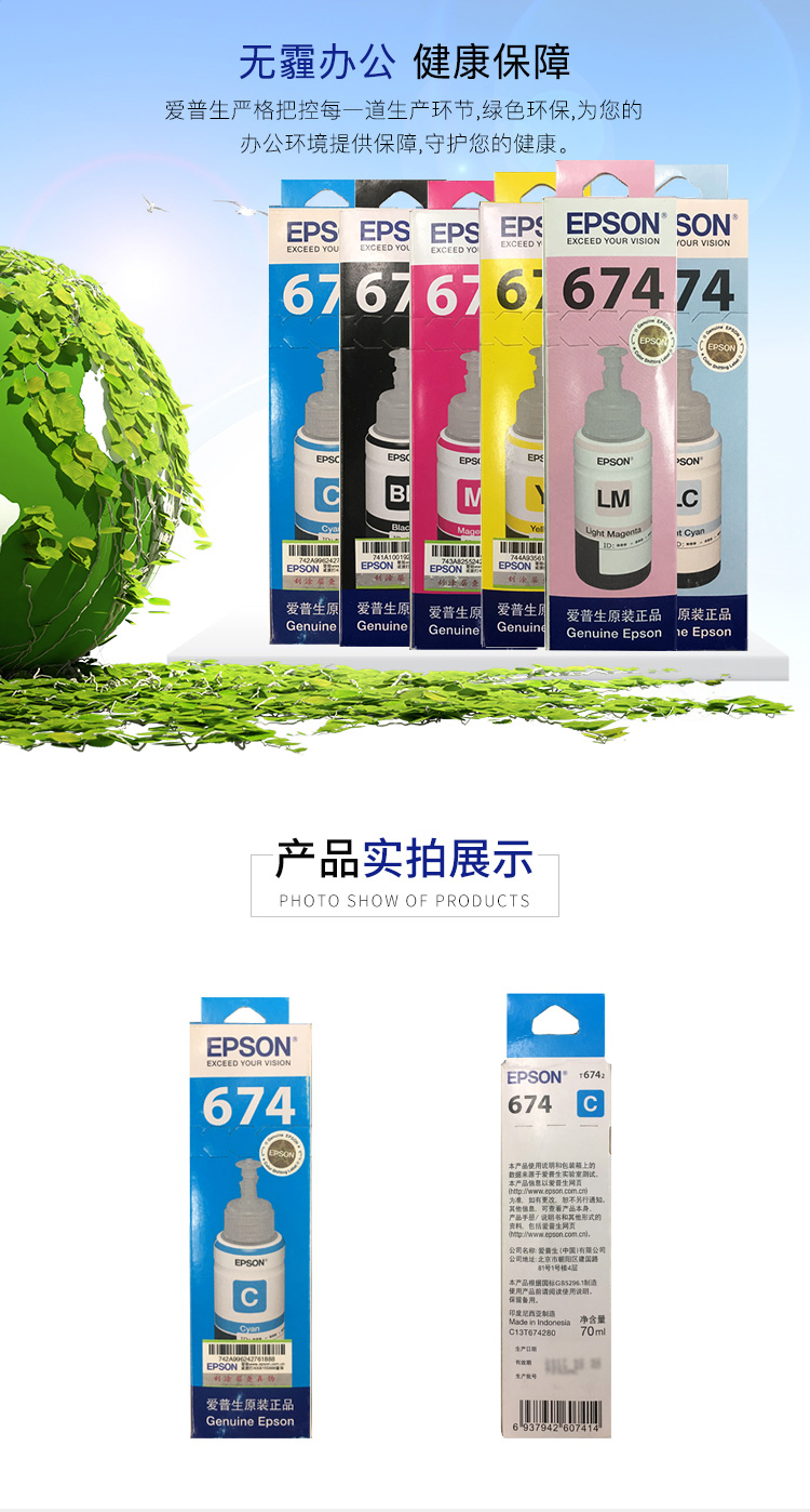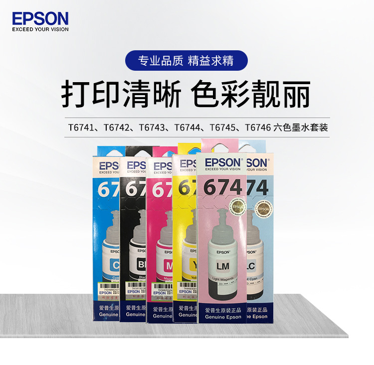愛普生(EPSON) 墨水/補充液/墨囊 T674 墨水套裝 T674系列6色(適用L801/L805/L810/L850/L1800/6745)