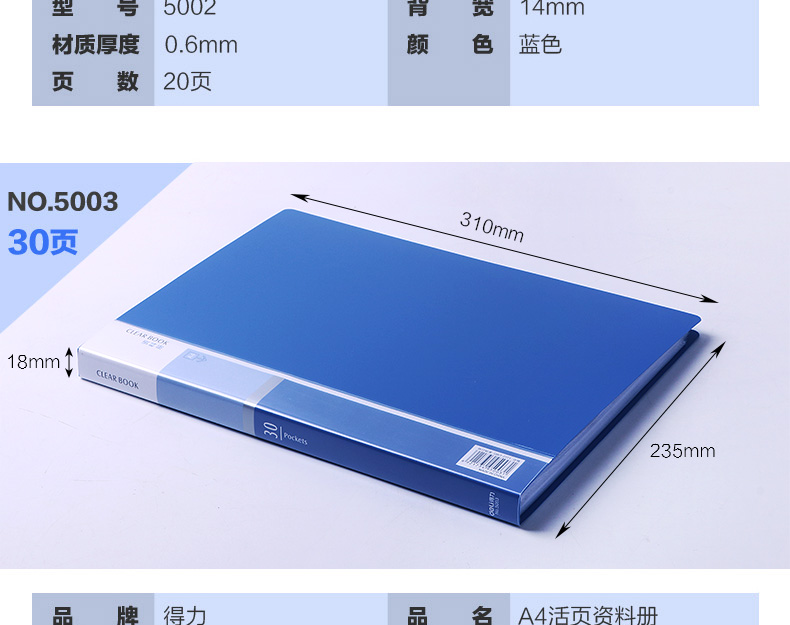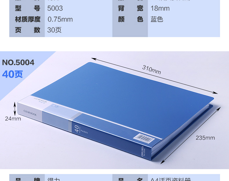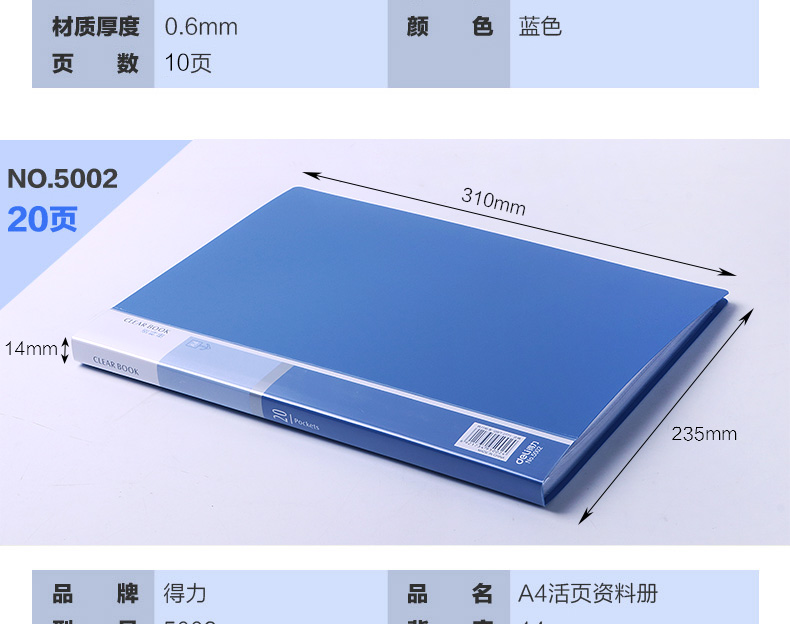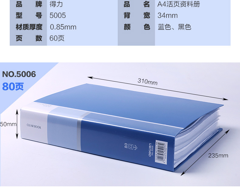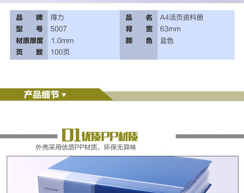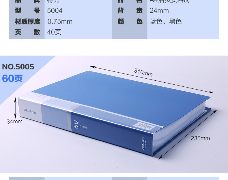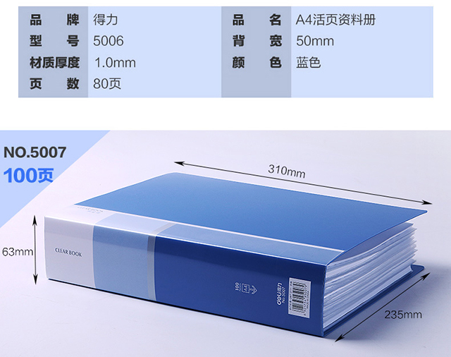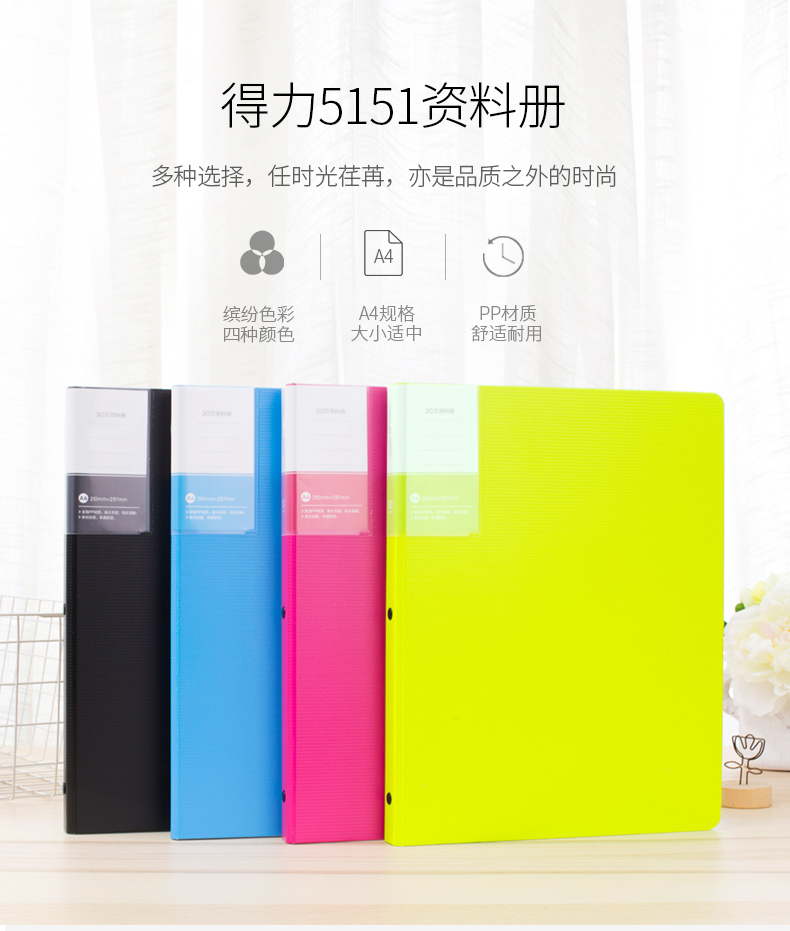 得力(deli)5005ES 文件夾 資料冊(cè) A4活頁資料冊(cè) 彩色插頁袋 孕檢資料冊(cè) 辦公用品 顏色隨機(jī) 單個(gè)裝 (60頁)