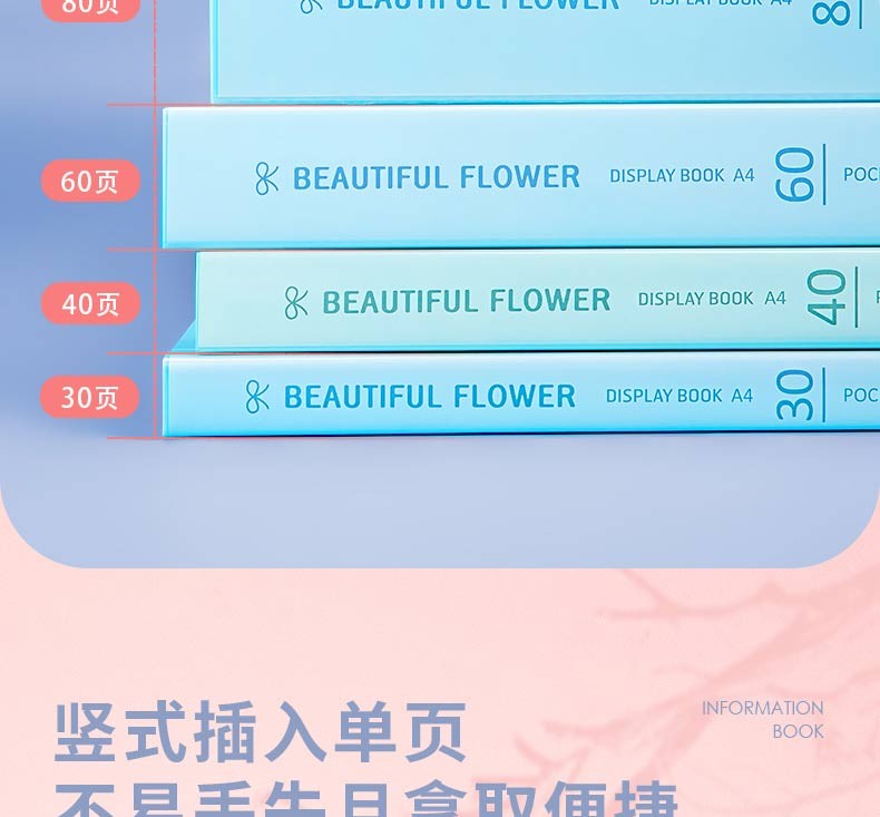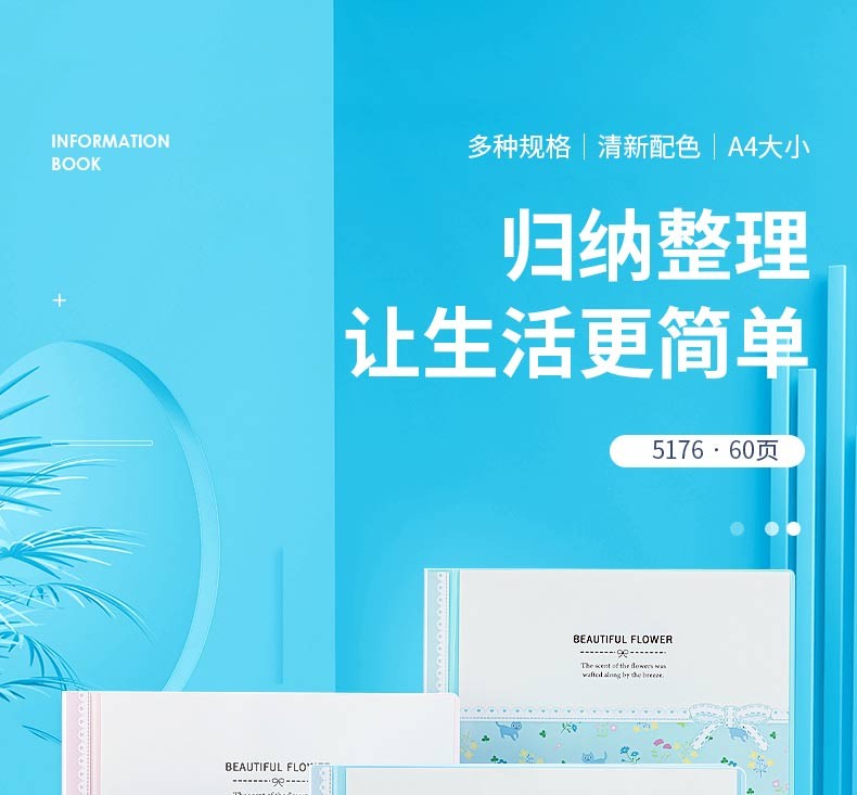 得力(deli) 5173 文件夾 資料冊 A4活頁資料冊文件夾 插頁多頁檔案 寶寶兒童成長冊 孕婦產(chǎn)檢孕期孕檢單收納 淺藍30頁 資料冊
