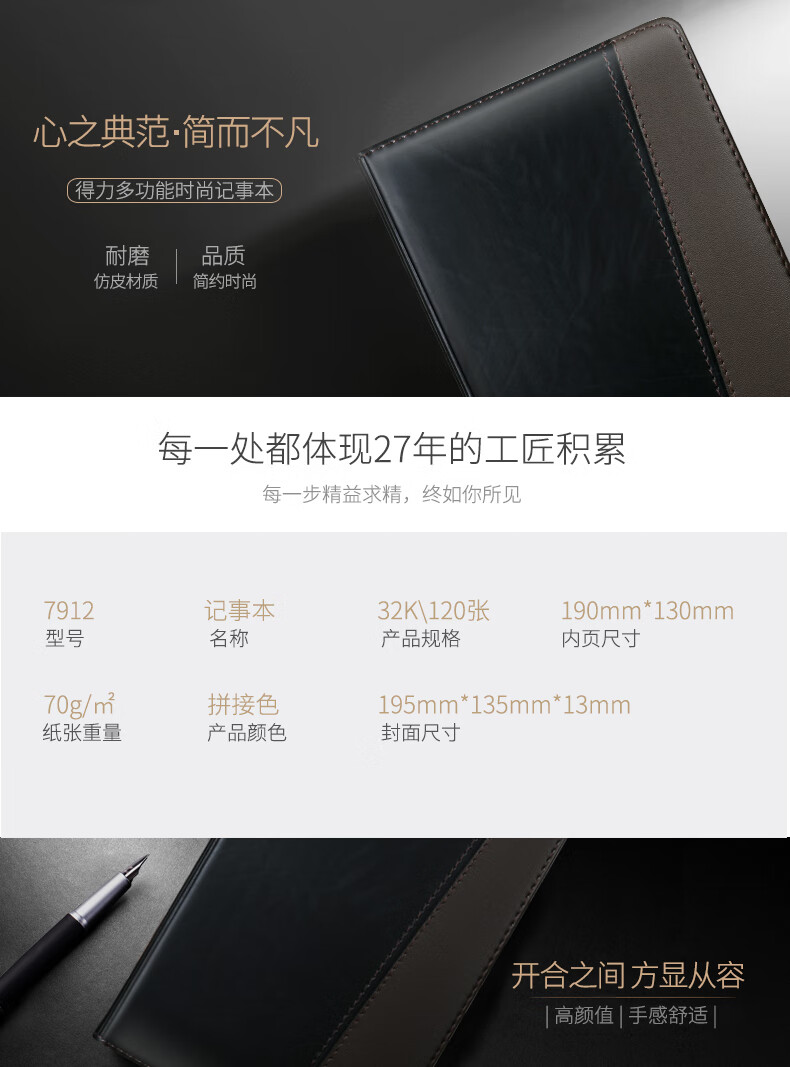 得力(deli) 7947 薄本冊(cè) 32K120張時(shí)尚撞色商務(wù)皮面本 會(huì)議記事本筆記本子日記本文具辦公用品