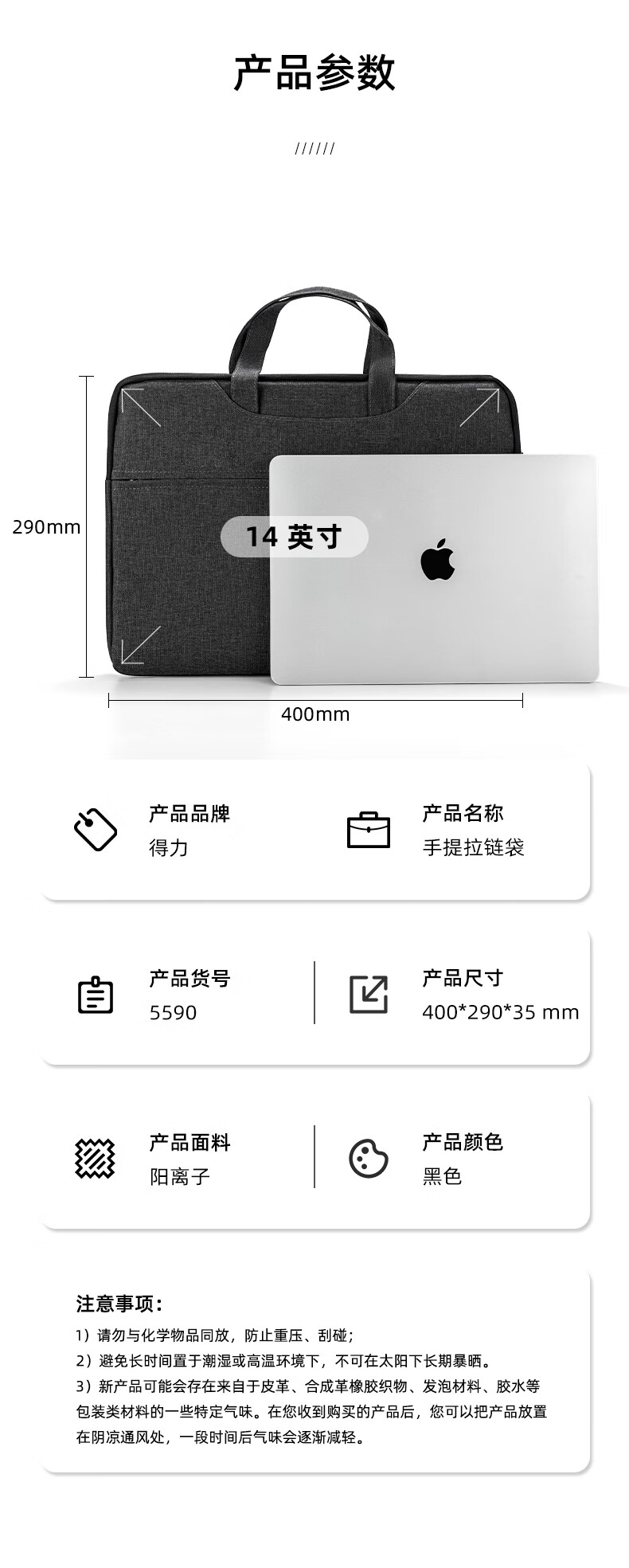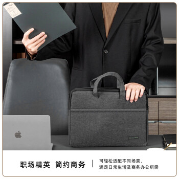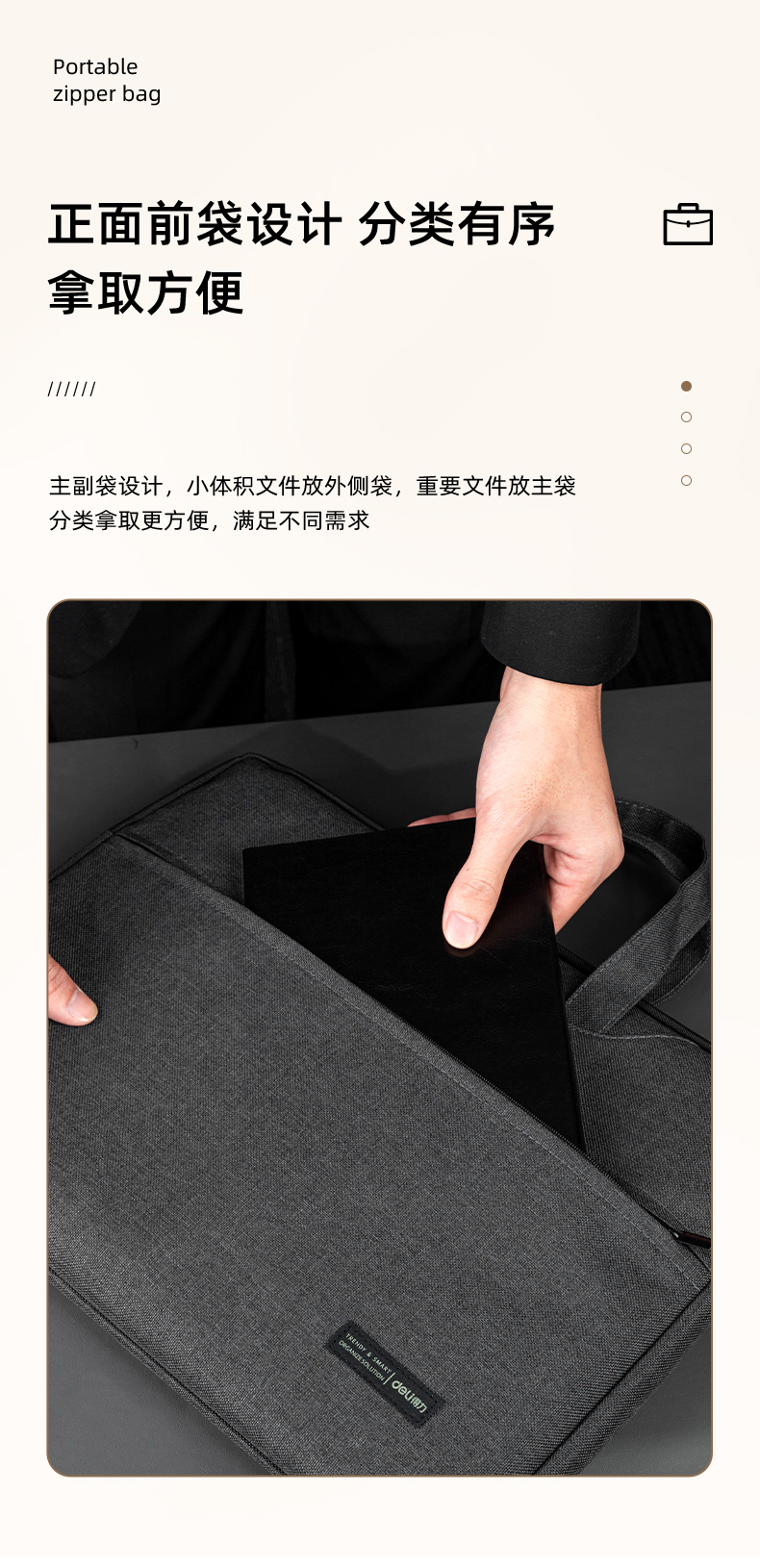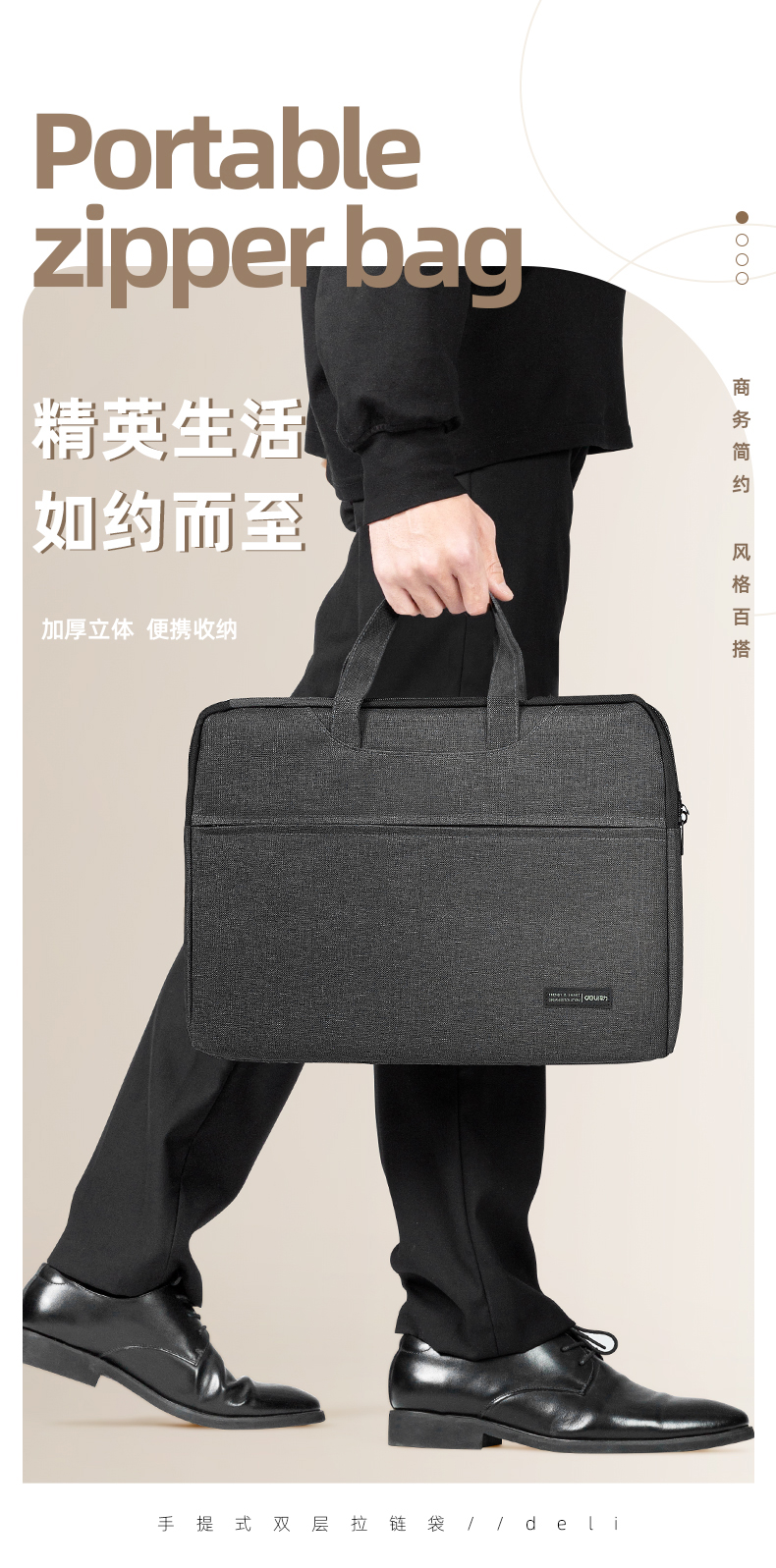 得力(deli)日用箱包 5590加厚立體辦公手提袋/會(huì)議包/事務(wù)包/文件包/商務(wù)拉鏈袋電腦公文包 黑色5590 便攜大容量