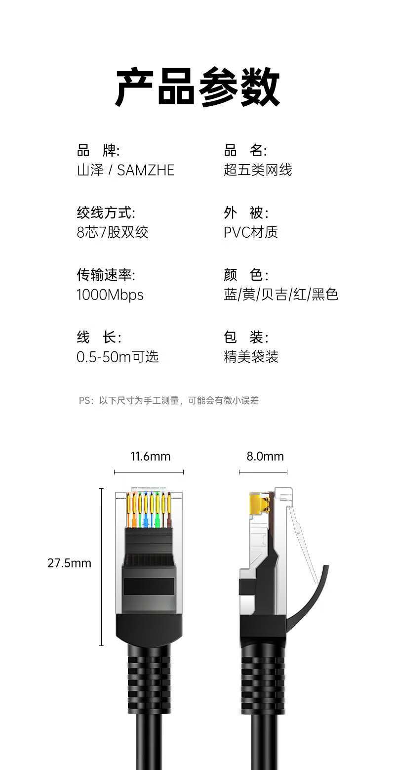 山澤(SAMZHE) 數(shù)據(jù)線SZW-1080 超五類網(wǎng)線 7米