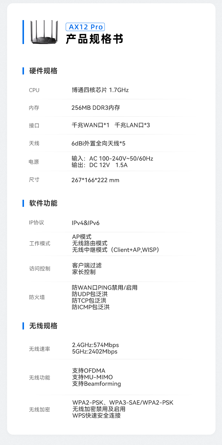 騰達(Tenda)路由器 5620 WiFi6千兆無線路由器 3000M無線速率 5G雙頻 家用智能路由