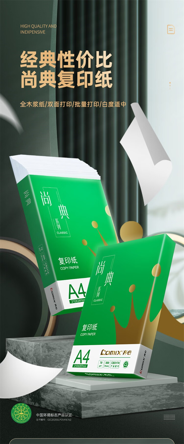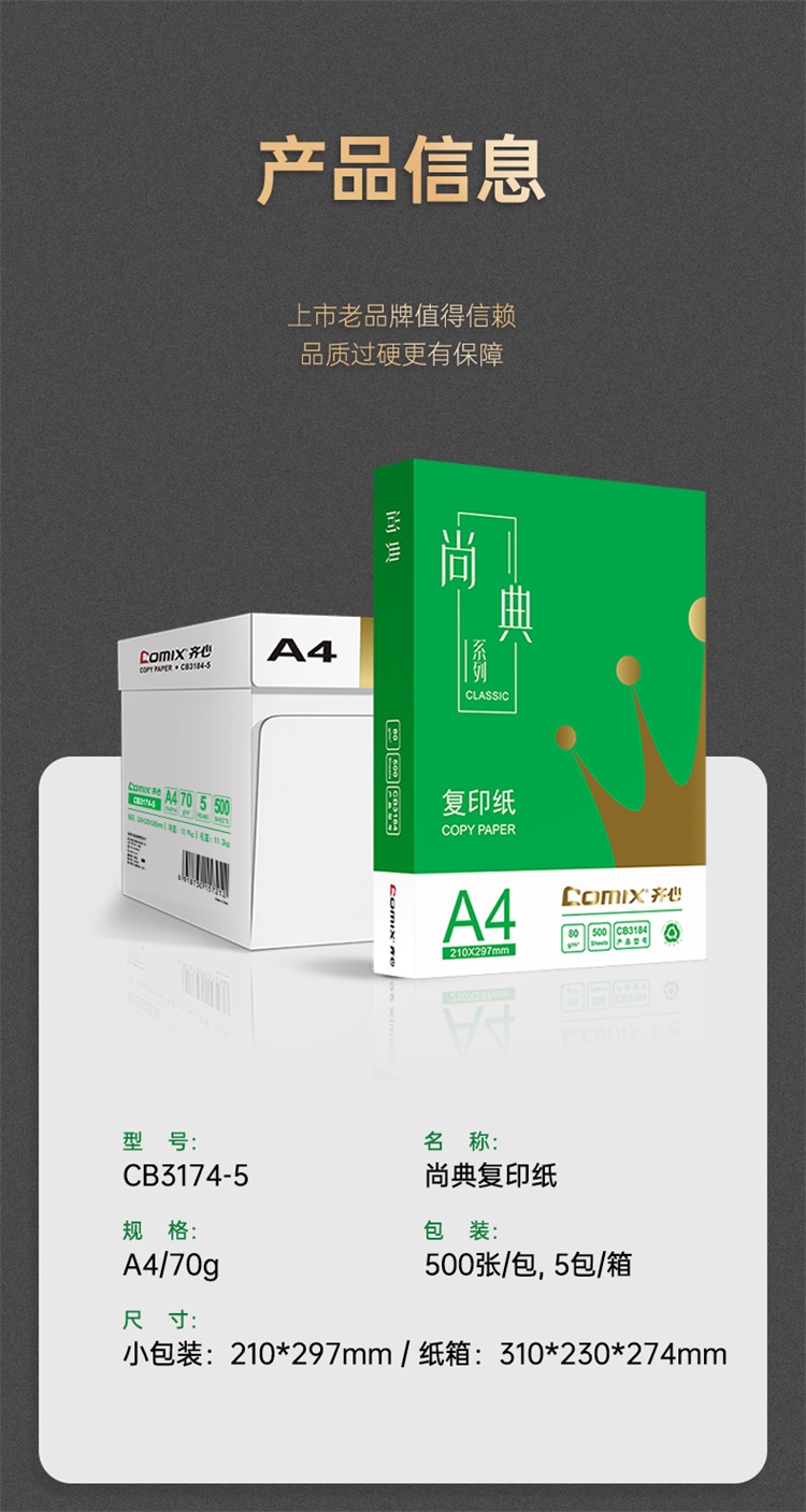 齊心(Comix) CB3174-5 復(fù)印紙 70g A4紙 500張/包 5包/箱