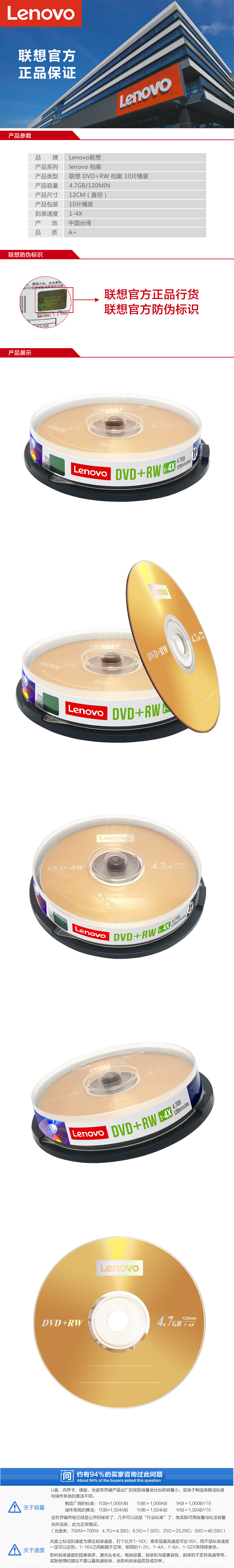 聯(lián)想(Lenovo)DVD+RW 光盤庫/空白光盤/刻錄盤 25G 桶裝10片