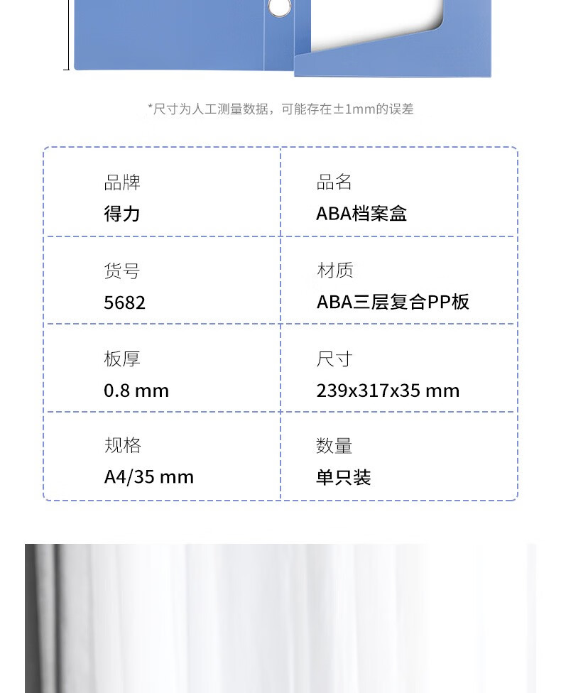 得力(deli) 檔案盒A4塑料大號(hào)加厚收納文件盒帶標(biāo)簽文件夾 背寬50mm 藍(lán)色 5623 單個(gè)裝