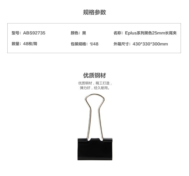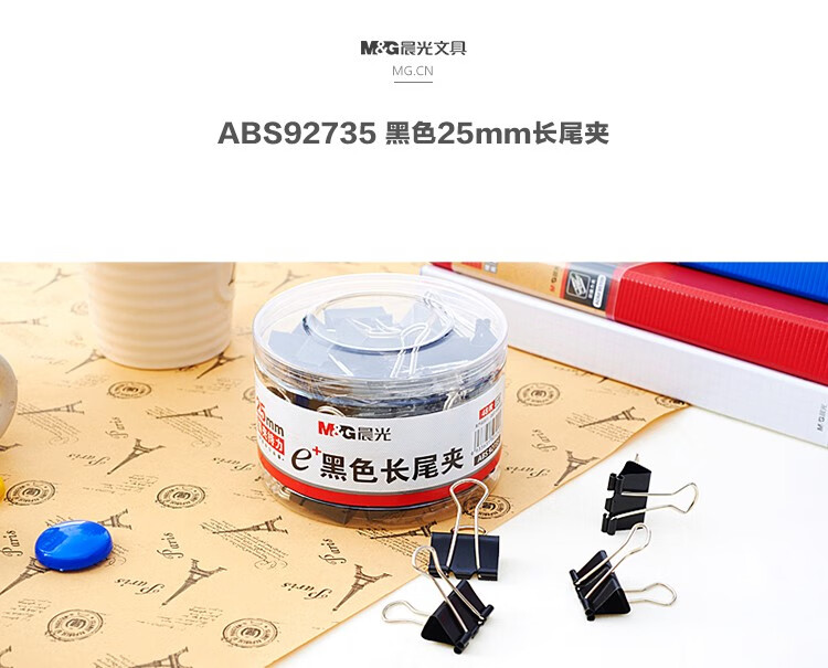 晨光(M&G) 長(zhǎng)尾夾大號(hào)夾子小號(hào)多功能書(shū)夾子試卷夾燕尾夾鳳尾夾 25mm 48個(gè)筒ABS92735